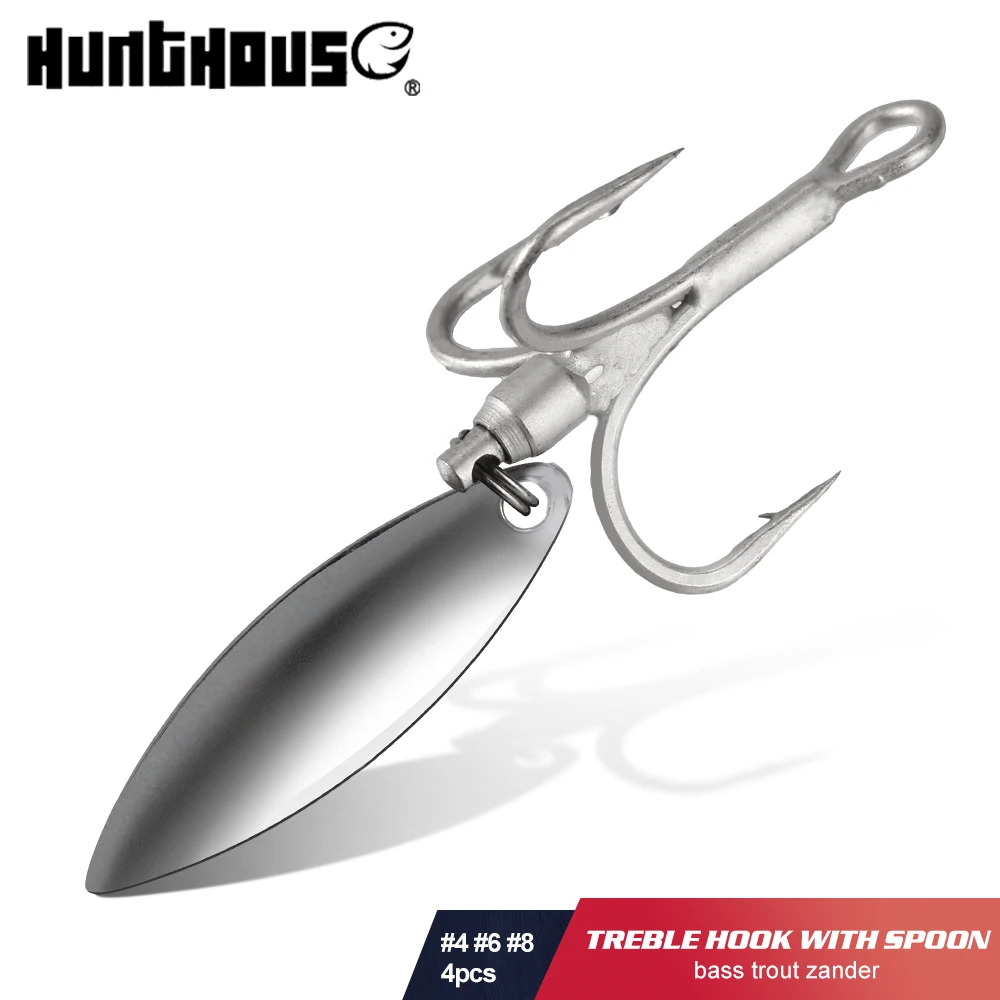 Anzuelo triple de pesca Hunthouse con cuchara 4 # 6 # 8 # Acero rico en carbono 4 unids/lote 3X fuerte para herramienta de aparejos de señuelo duro bajo