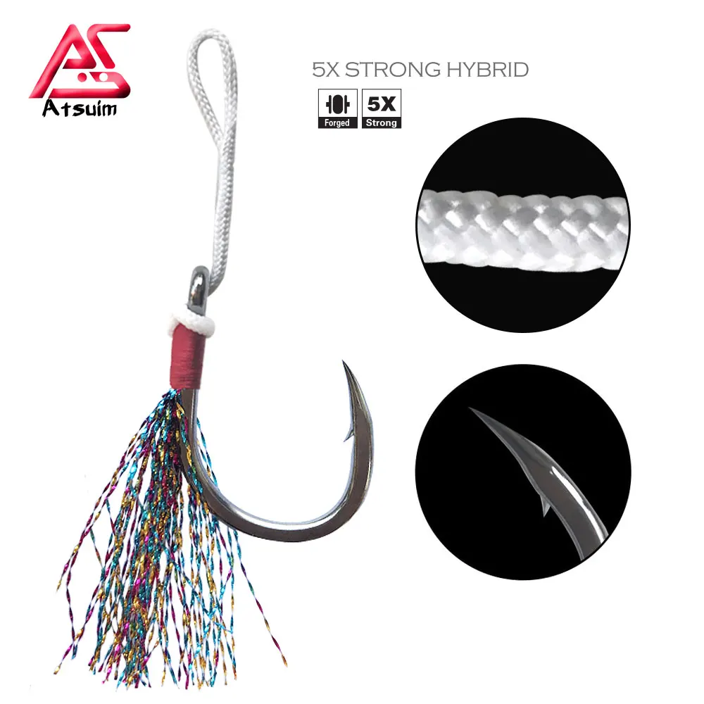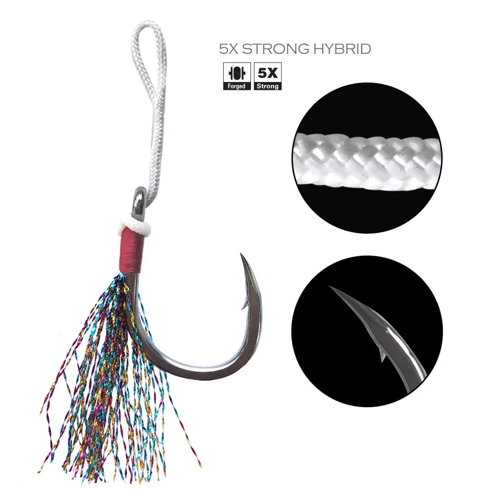 Anzuelos de acero inoxidable para pesca en agua salada, anzuelos brillantes para faldas de calamar, Jigging rápido y lento, accesorios de pesca, BKK
