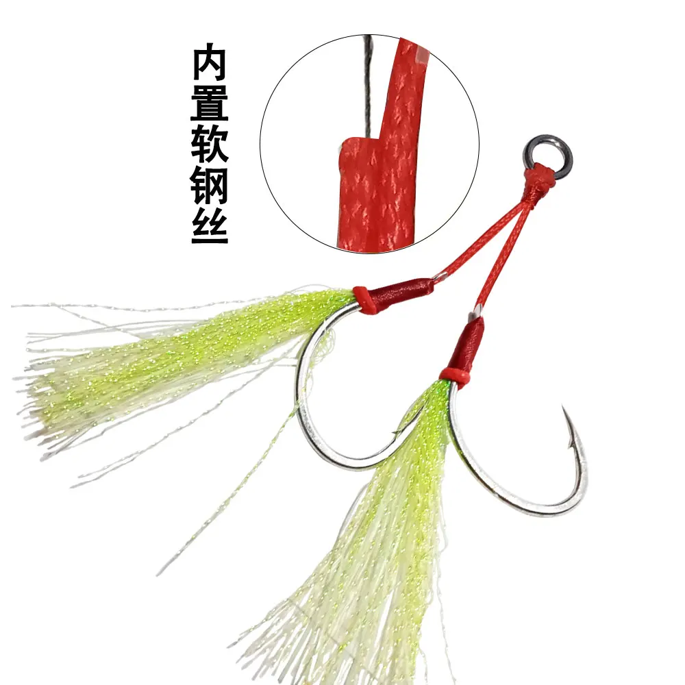 Anzuelos de acero inoxidable con púas para Pesca en el mar, aparejos de Pesca de carbono, anzuelos de plantilla con señuelo brillante 5/0, 5 pares por bolsa