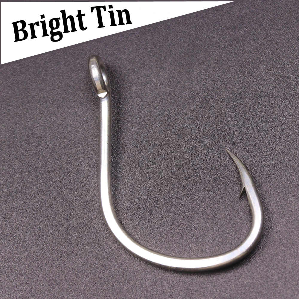 Anzuelos de agua salada antioxidantes chapados en estaño brillante, anzuelo de pesca offset con púas de acero de alto carbono, anzuelo de señuelo de Jigging de gran ayuda, 10 Uds.
