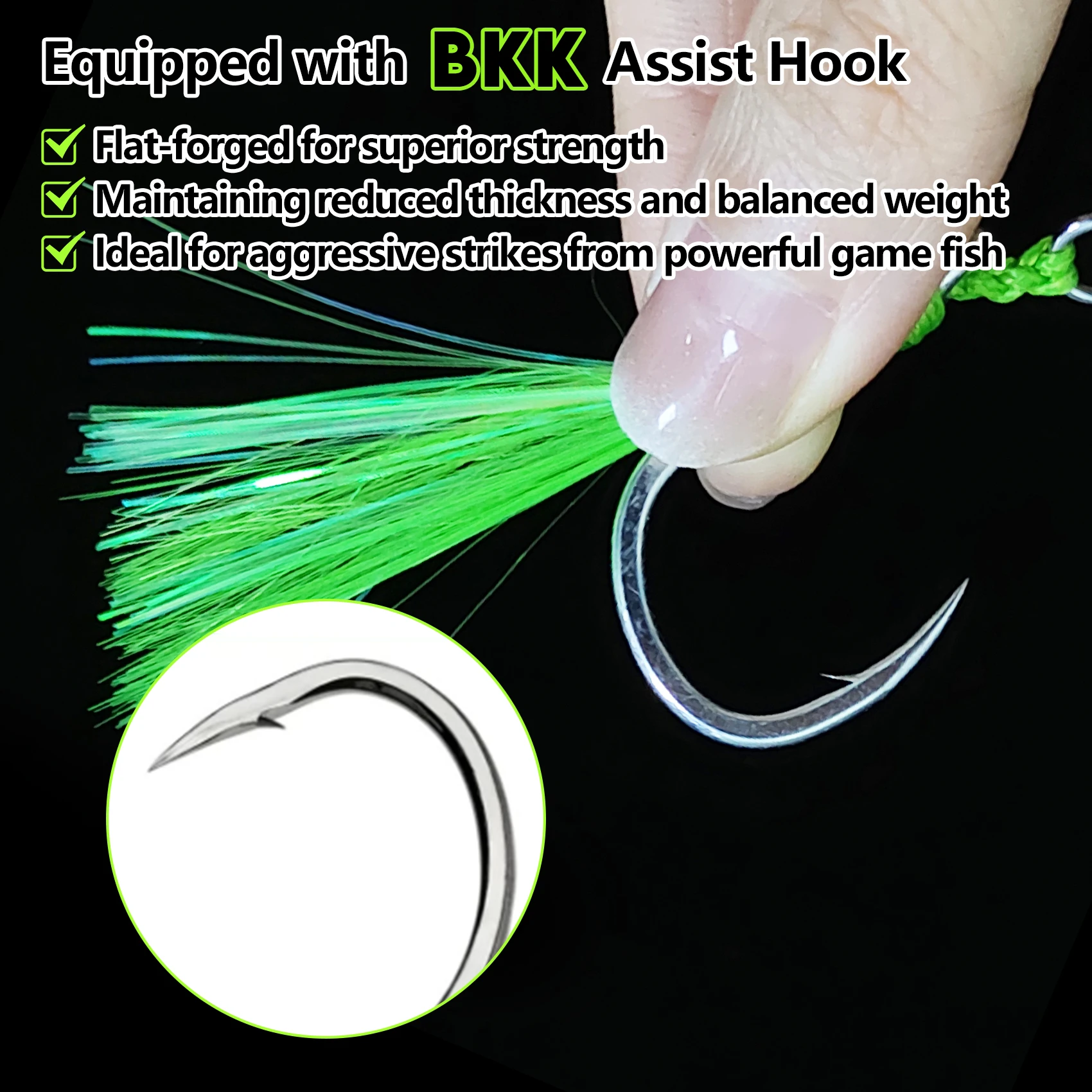 Double High-Strength BKK Hooks: Made from premium BKK brand flat-forged double hooks, ultra-sharp, corrosion-resistant, and built to withstand hard fights with powerful fish.