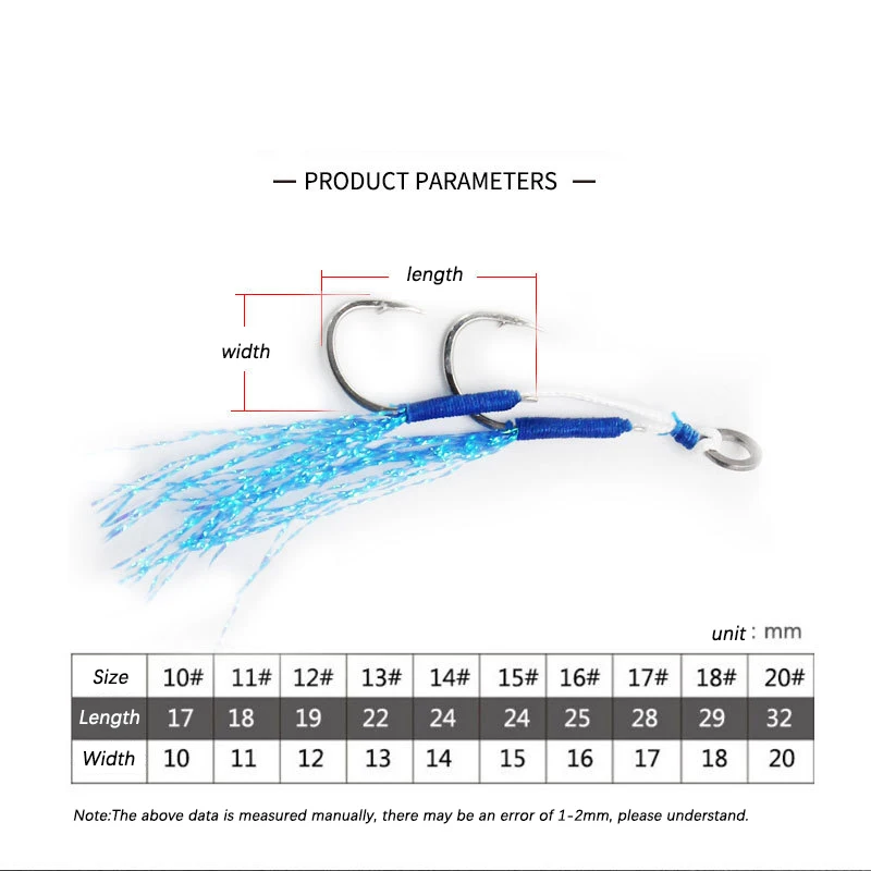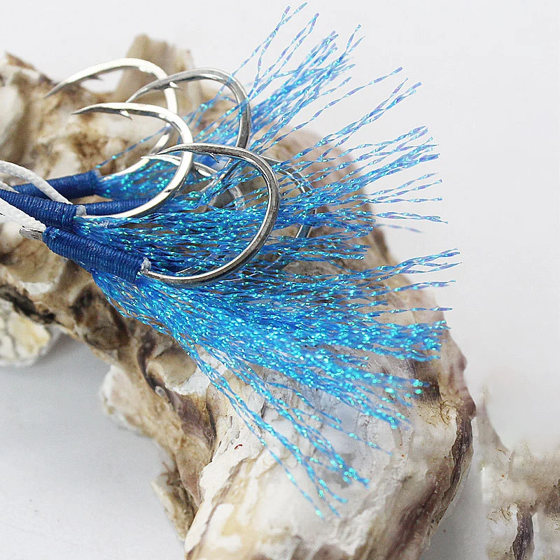Anzuelos de asistencia de púas dobles, accesorios de señuelo de pesca de acero de alto carbono, anzuelos de Jigging lento, 5 pares/bolsa