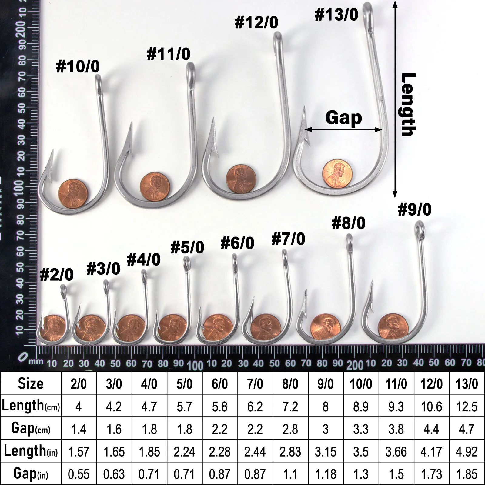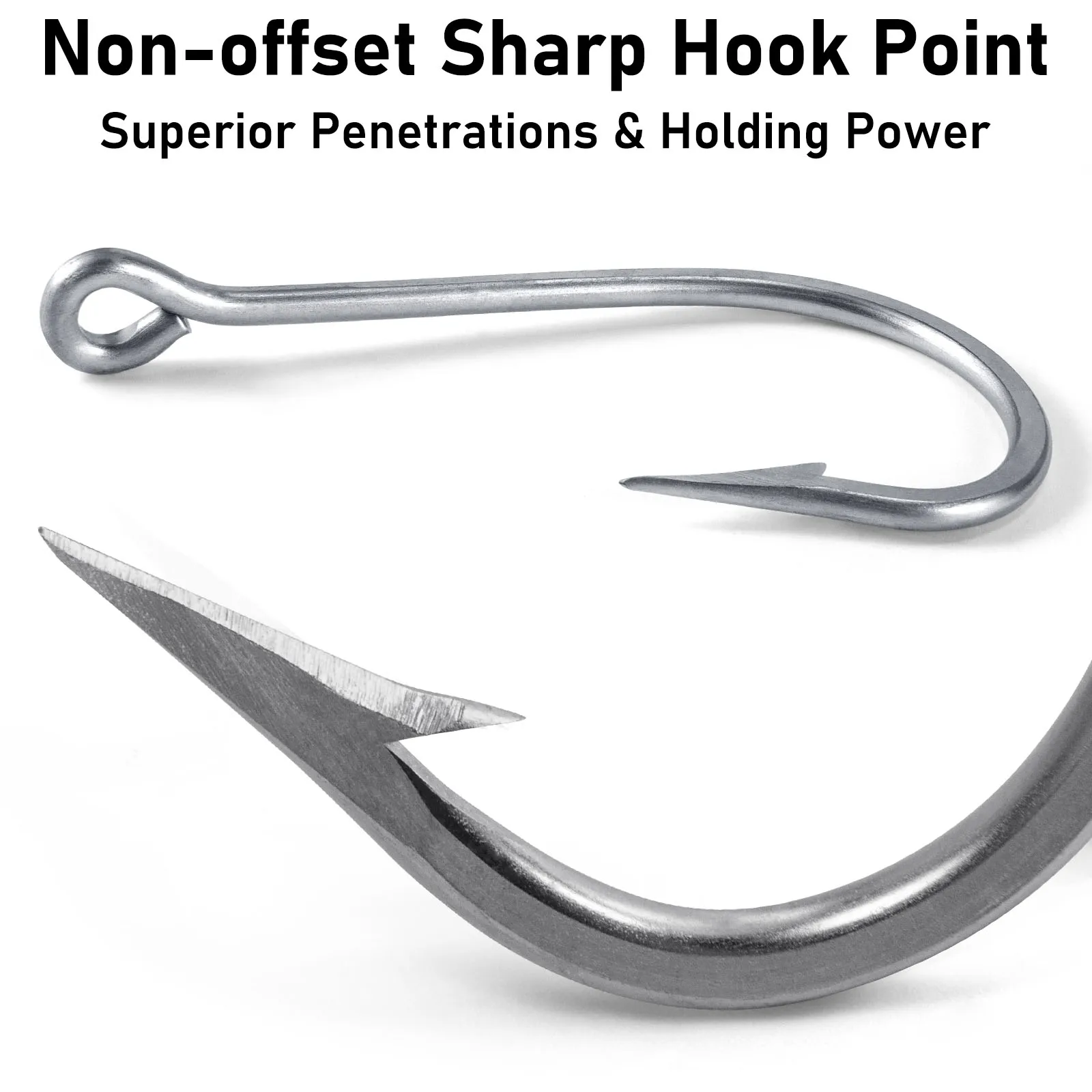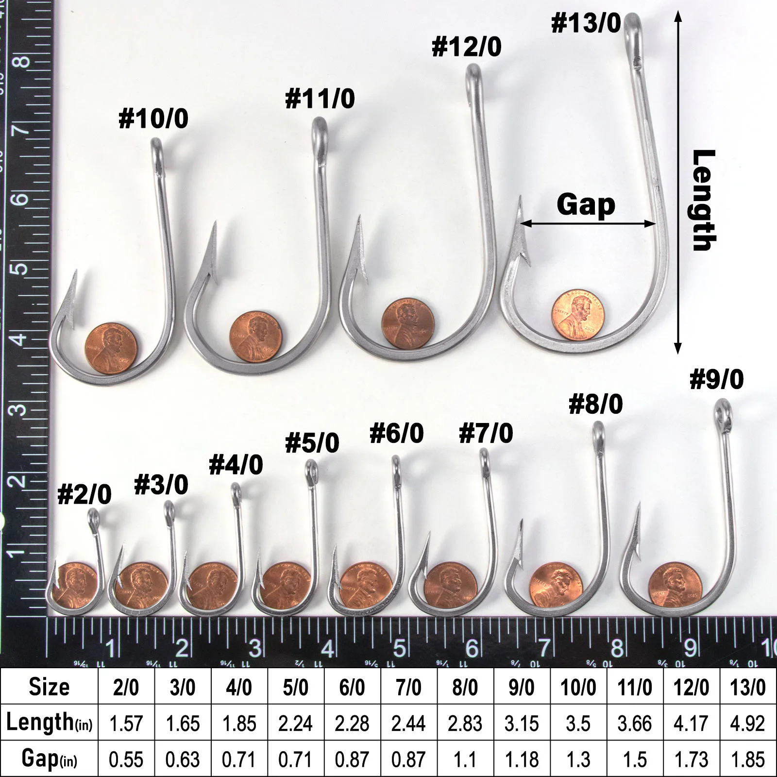 12 sizes available: 2/0-13/0. Non-offset hooks are one of the absolute best hooks for big game fishing and sharp