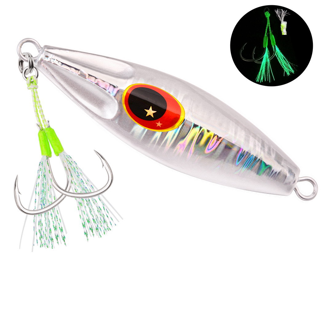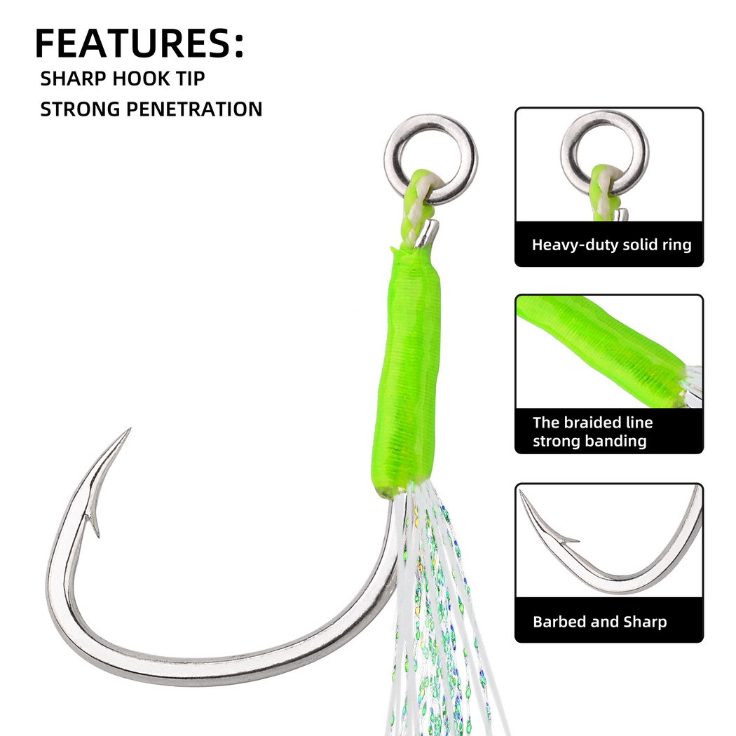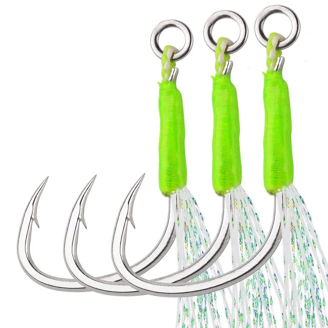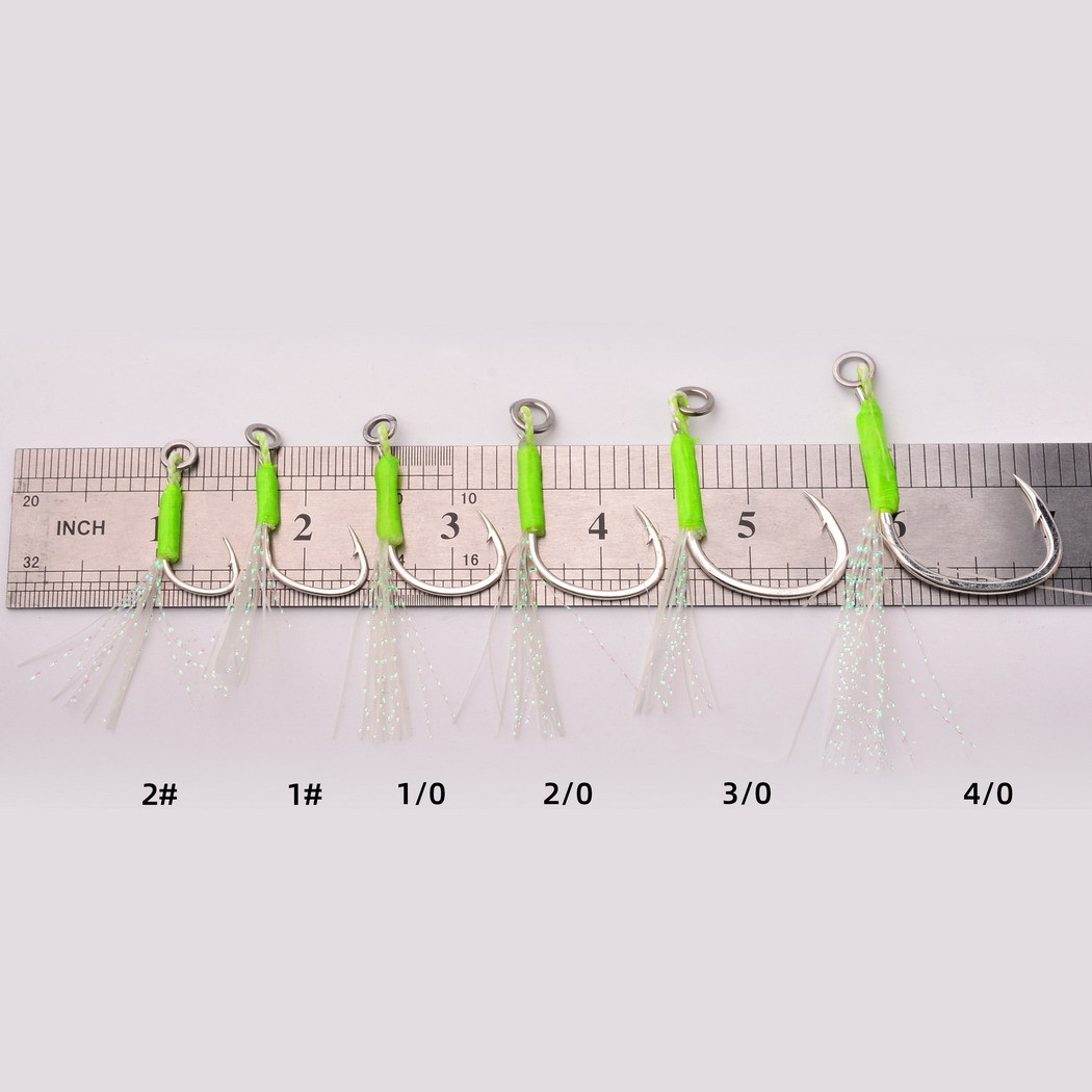 Anzuelos de ayuda para plantilla, 5 uds., línea de acero inoxidable de alta resistencia, tubo luminoso, pluma, anillo sólido, anzuelo de Jigging, anzuelos de pesca para barcos