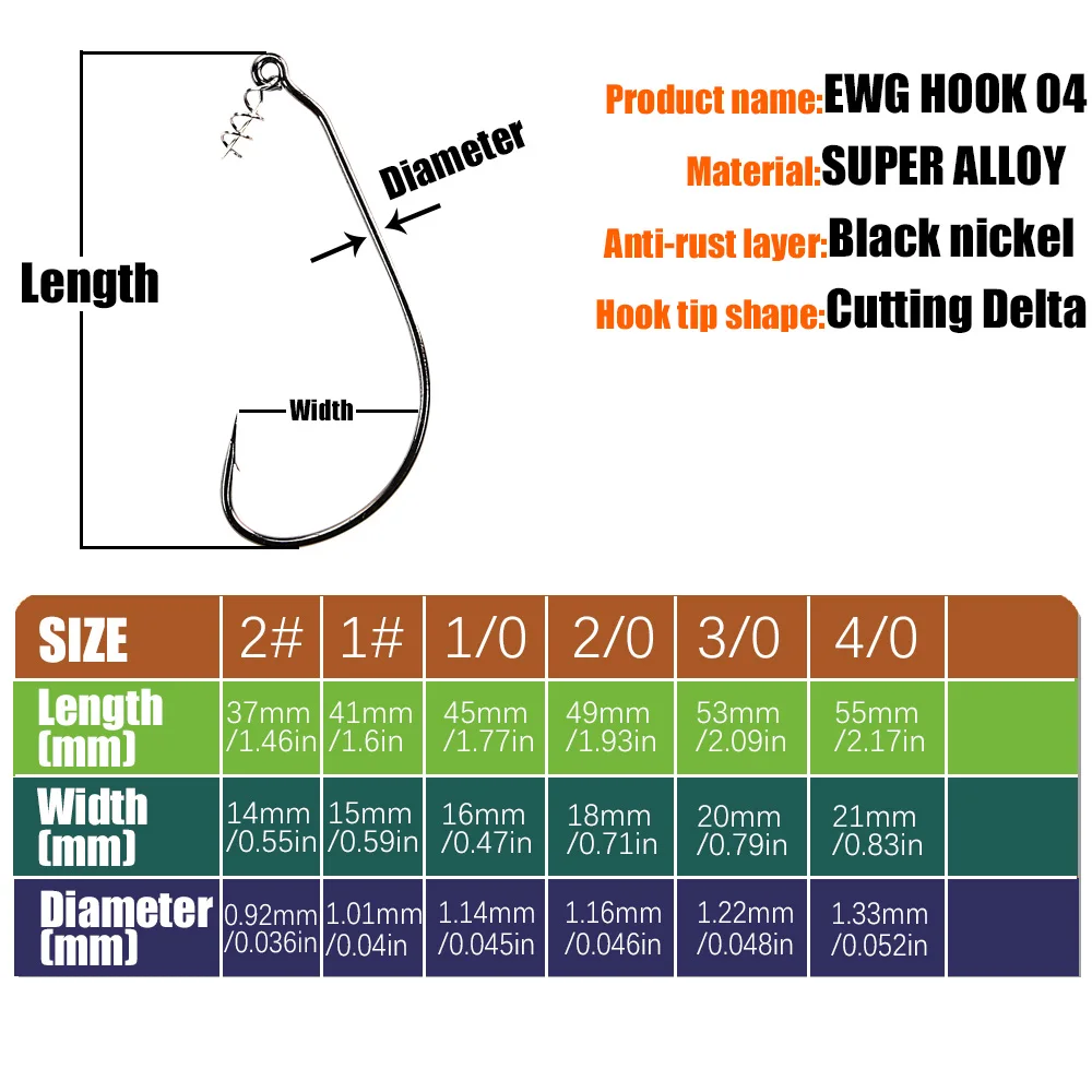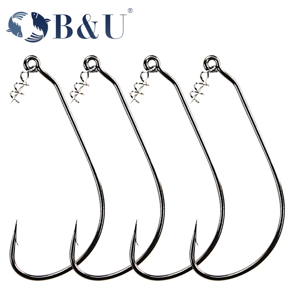 Anzuelos B & U Ewg, 50 Uds., anzuelos de aparejo Texas para pesca de lubina, anzuelos de pesca de gusanos compensados de espacio amplio, anzuelo compensado para pesca en agua dulce