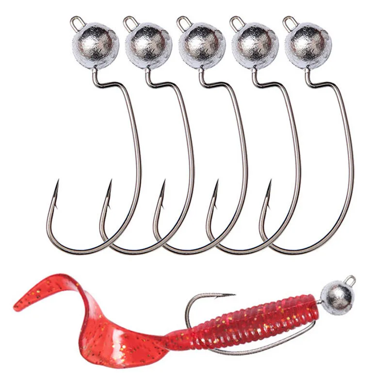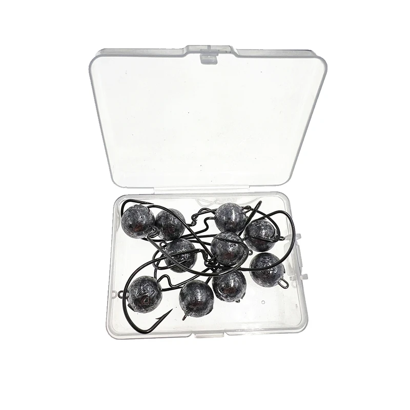10 unids/caja de manivela de pesca, cabeza de plantilla de plomo expuesto, anzuelos de pesca, cebos blandos, accesorios de pesca de gusano Jigging