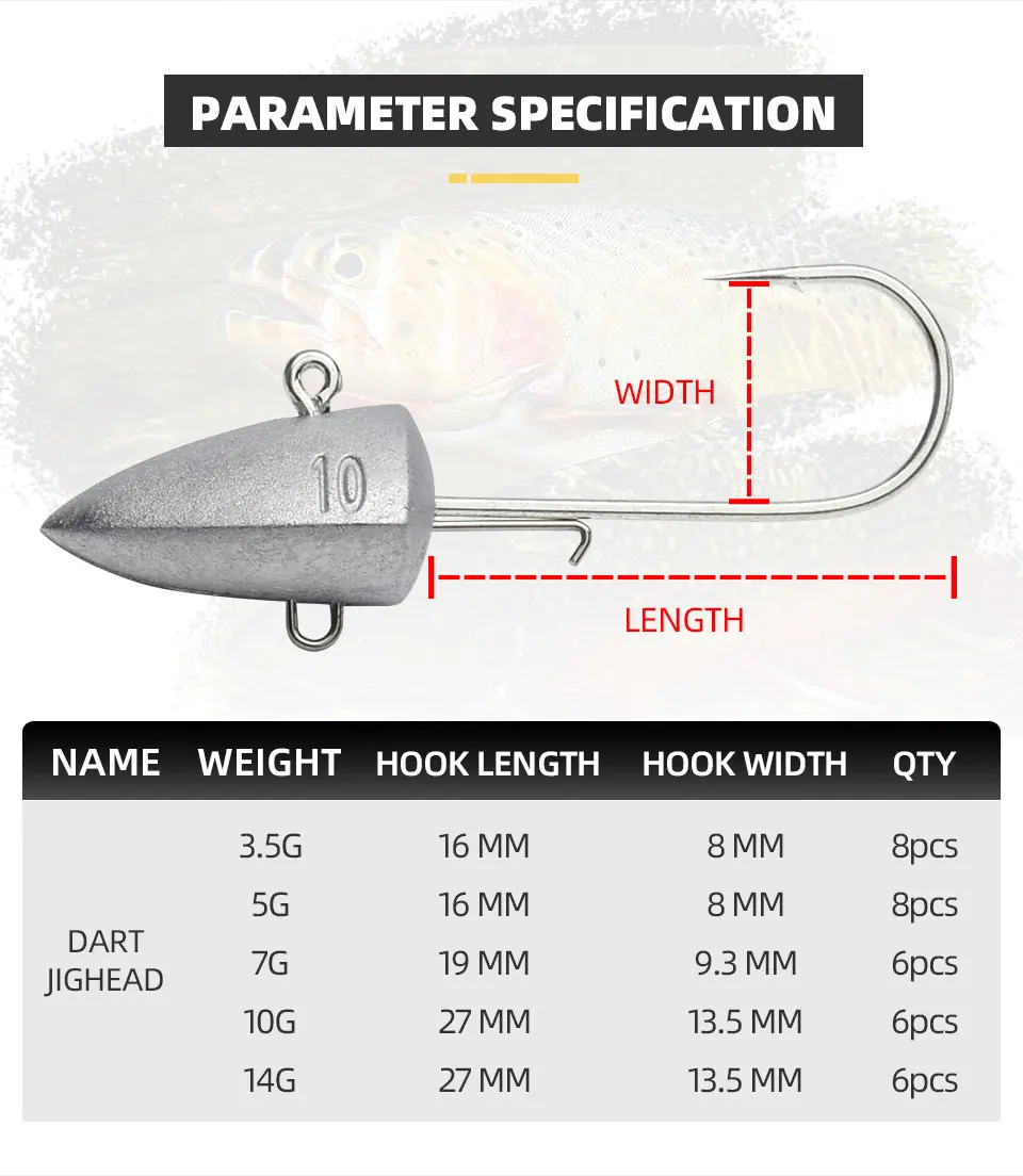 Anzuelos BLUX Dart Jighead 3,5g 5g 7g 10g 14g anzuelo de señuelo de pesca de gusano señuelo suave cabeza de plantilla cebo Artificial aparejos de pesca