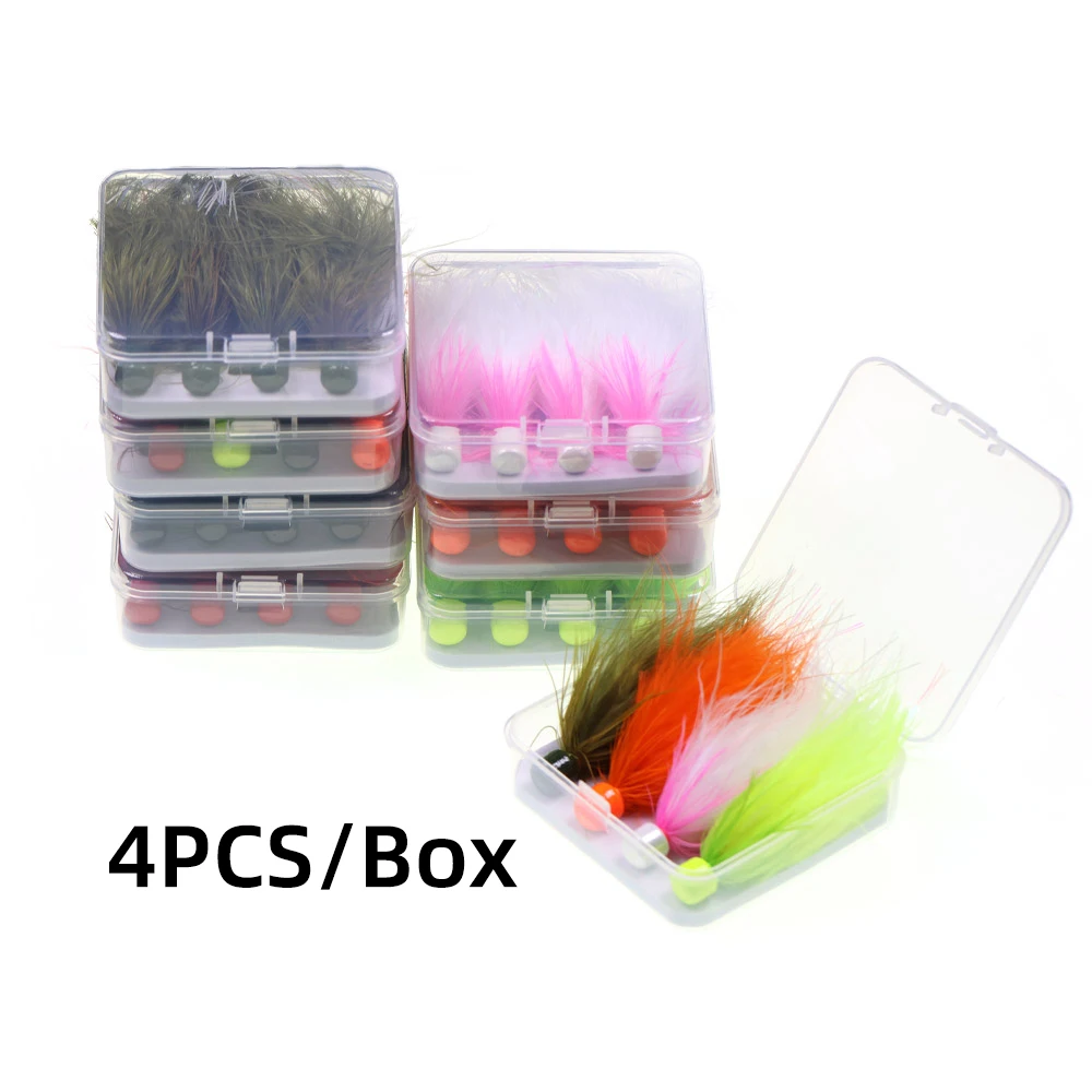 Anzuelos con cabeza de plantilla de 0,02 oz, plantillas de Marabú, señuelos de pesca en hielo, tipo de pez, perca, trucha, salmón, lubina, pesca Walleye, 4 unids/caja