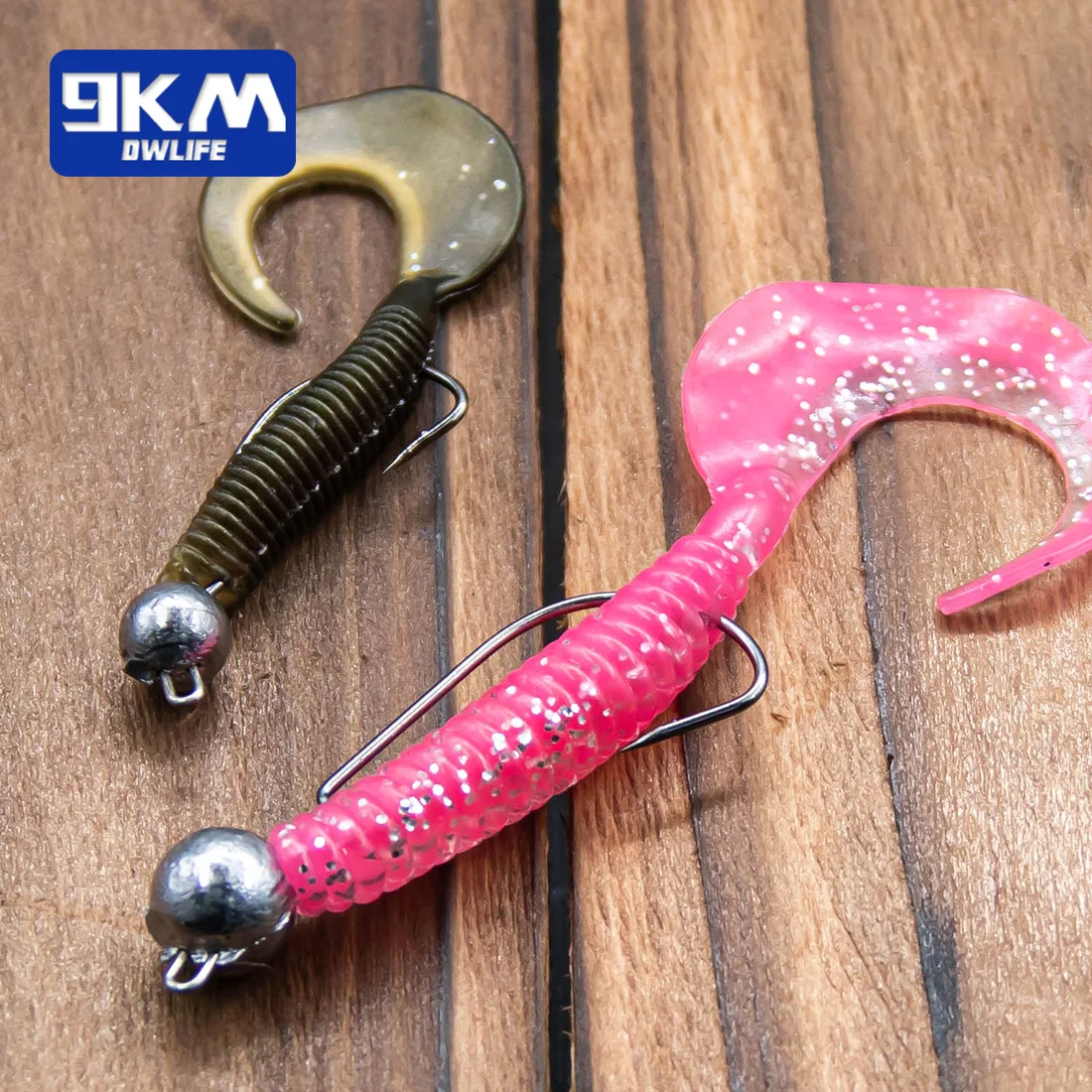 Anzuelos de cabeza de plantilla de 10 ~, anzuelos de pesca de gusano de espacio ancho, anzuelos de señuelo de pesca suave de cabeza de plomo, aparejos de pesca de carpa de lubina con púas, agua salada