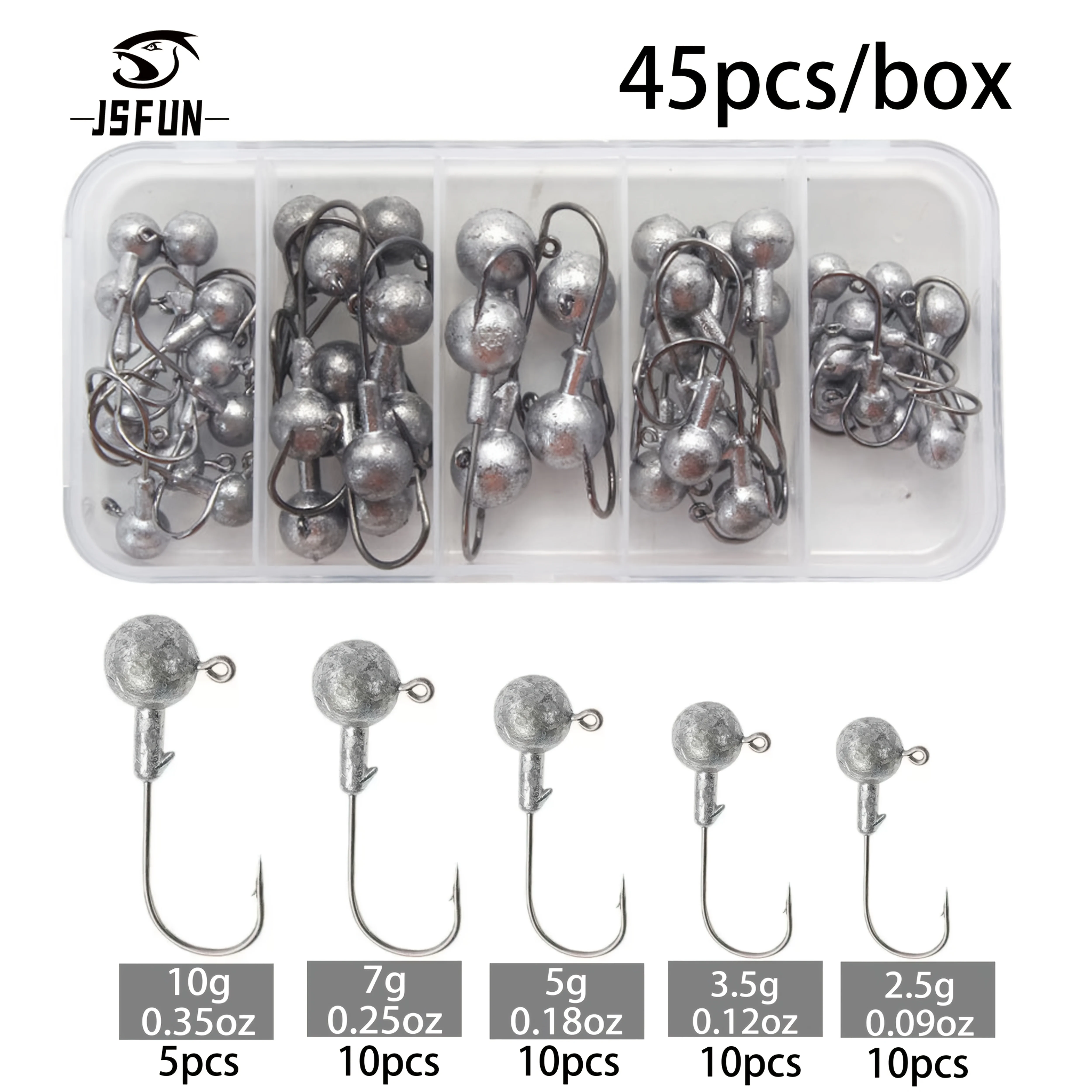 Juego de ganchos con cabeza de plantilla de 45 piezas| Anzuelos de pesca de púas de primera calidad con cabezales de plomo ponderados de 2,5 g/3,5 g/5 g/7 g/10 g