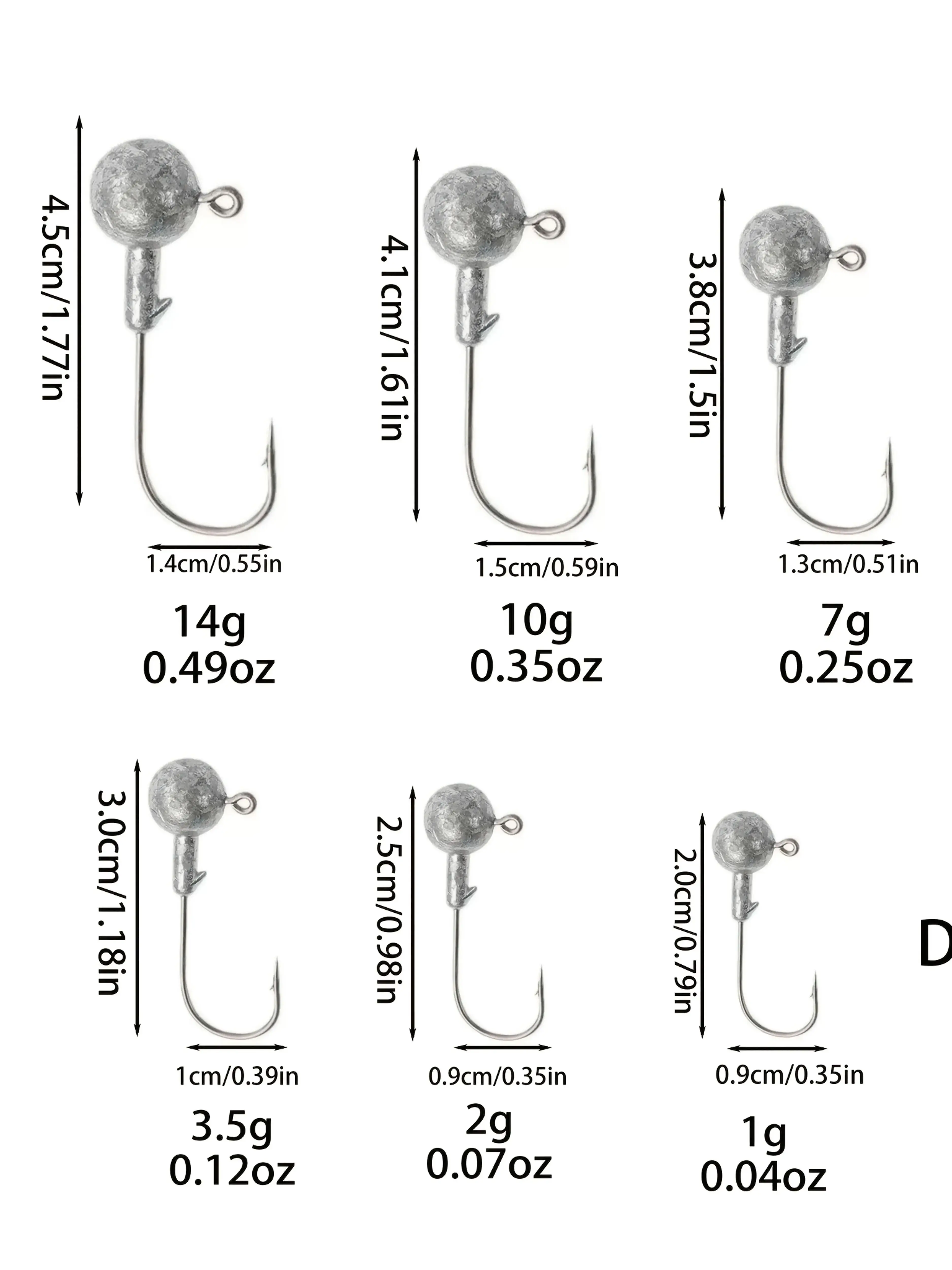 7 pesos múltiples para pesca de precisión: Elija entre cabezales de plantilla de 1 g, 2 g, 3,5 g, 5 g, 7 g, 10 g y 14 g, perfectos para arroyos poco profundos, lagos profundos o corrientes rápidas.