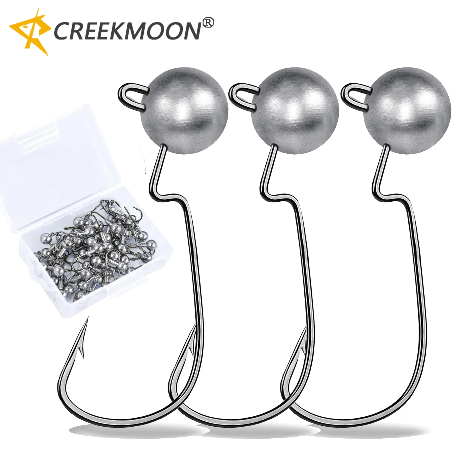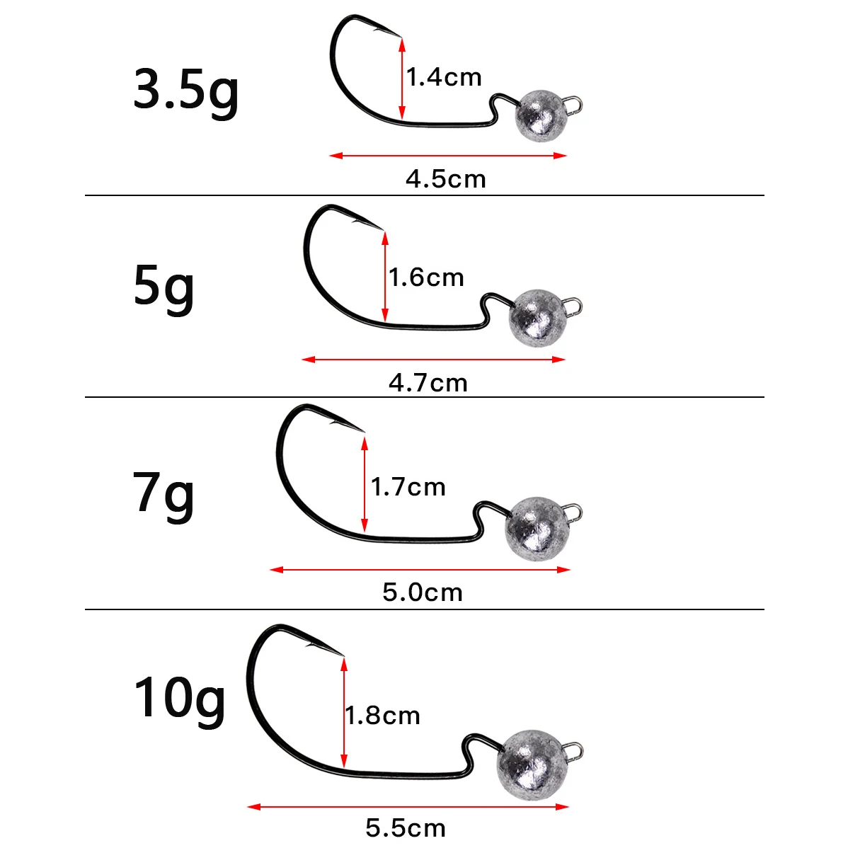 Anzuelos de cabeza de anzuelo de manivela, señuelo de gusano suave, lubina, Pesca, buenos productos, 3,5-10g, accesorios para lucio y trucha, 10 unids/lote por caja