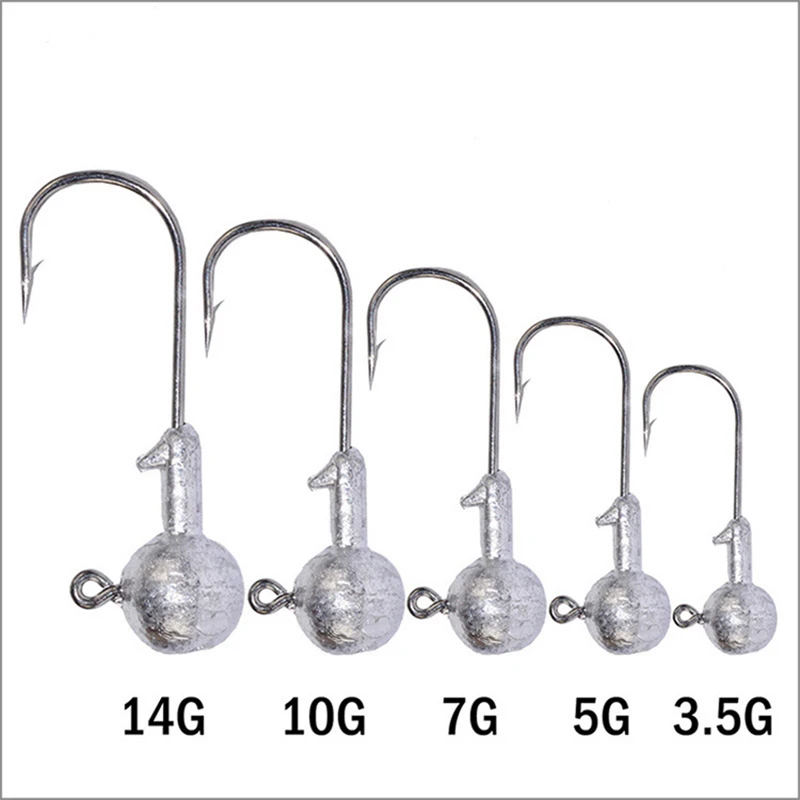 Anzuelos de cabeza de plomo para pesca, anzuelos de 3,5g, 5g, 7g, 10g, 14g, de alta calidad, con púas de agua salada, para señuelos blandos, 5 unids/lote por paquete