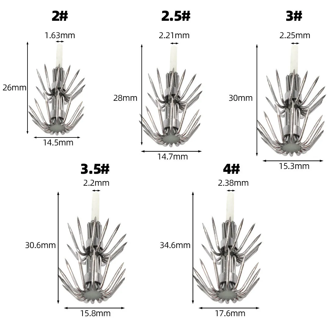 Anzuelos de calamar de sepia, anzuelos de acero inoxidable, gancho de garra brillante, afilado, paraguas, cebos para camarones y pulpo, 50-100 piezas