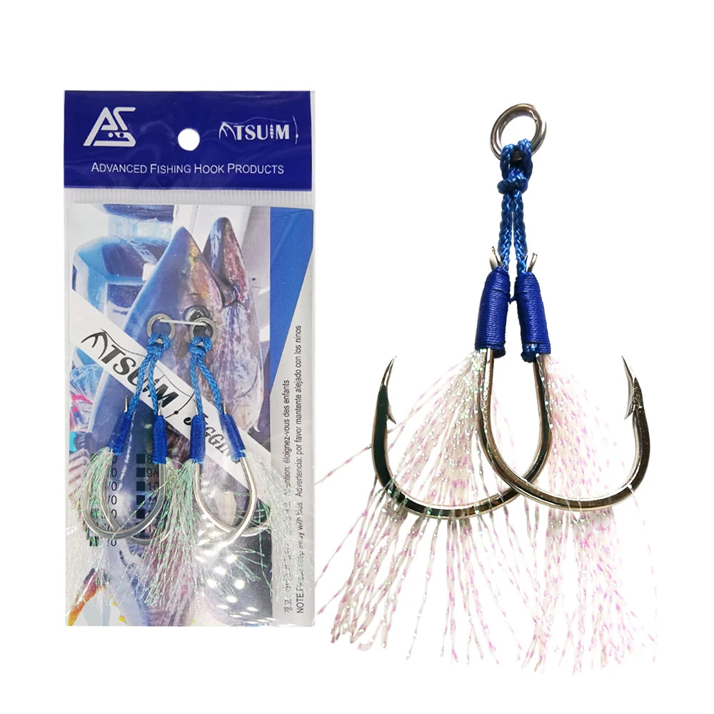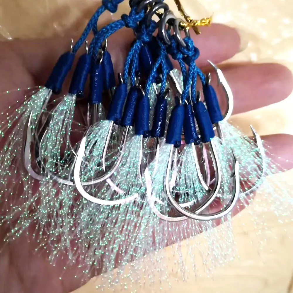 Anzuelos de carbono de agua salada, anzuelos de púas de plantilla de pesca de alta resistencia, dispositivo de aparejos de señuelo que cae, asistente, 20 pares/bolsa