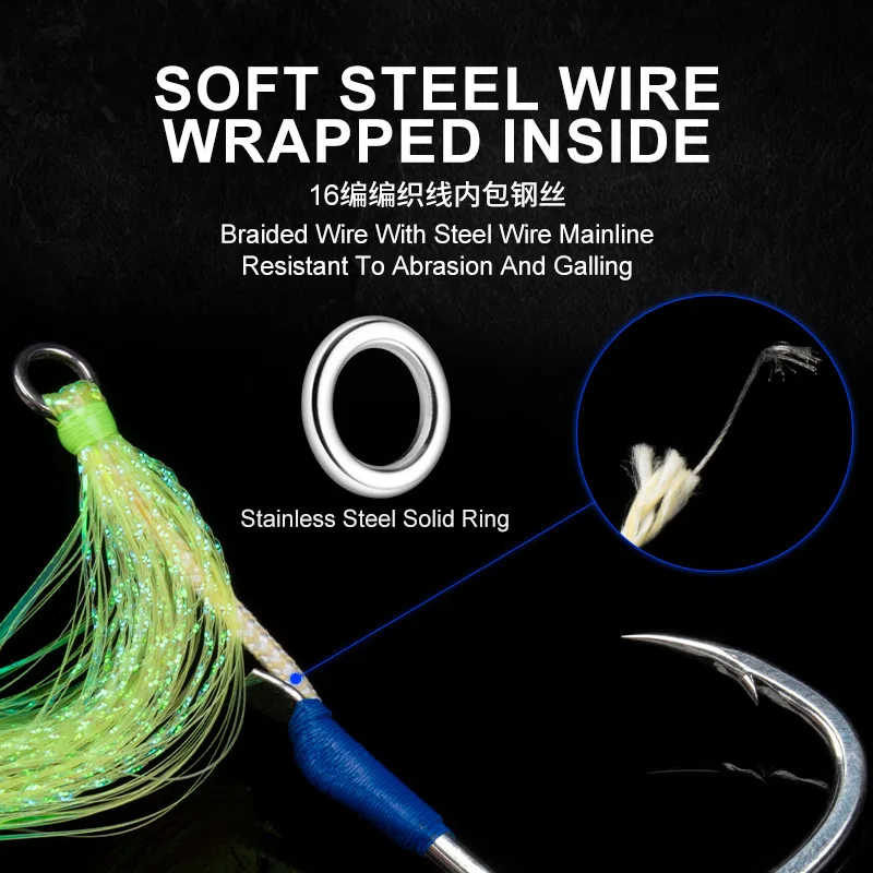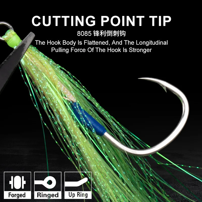 Anzuelos de carbono para agua salada, anzuelos de púas resistentes a caídas, anzuelos de pesca de carbono rápido lento, UV, 2/0, 3/0, 4/0, 5/0, 3 unids/lote por bolsa