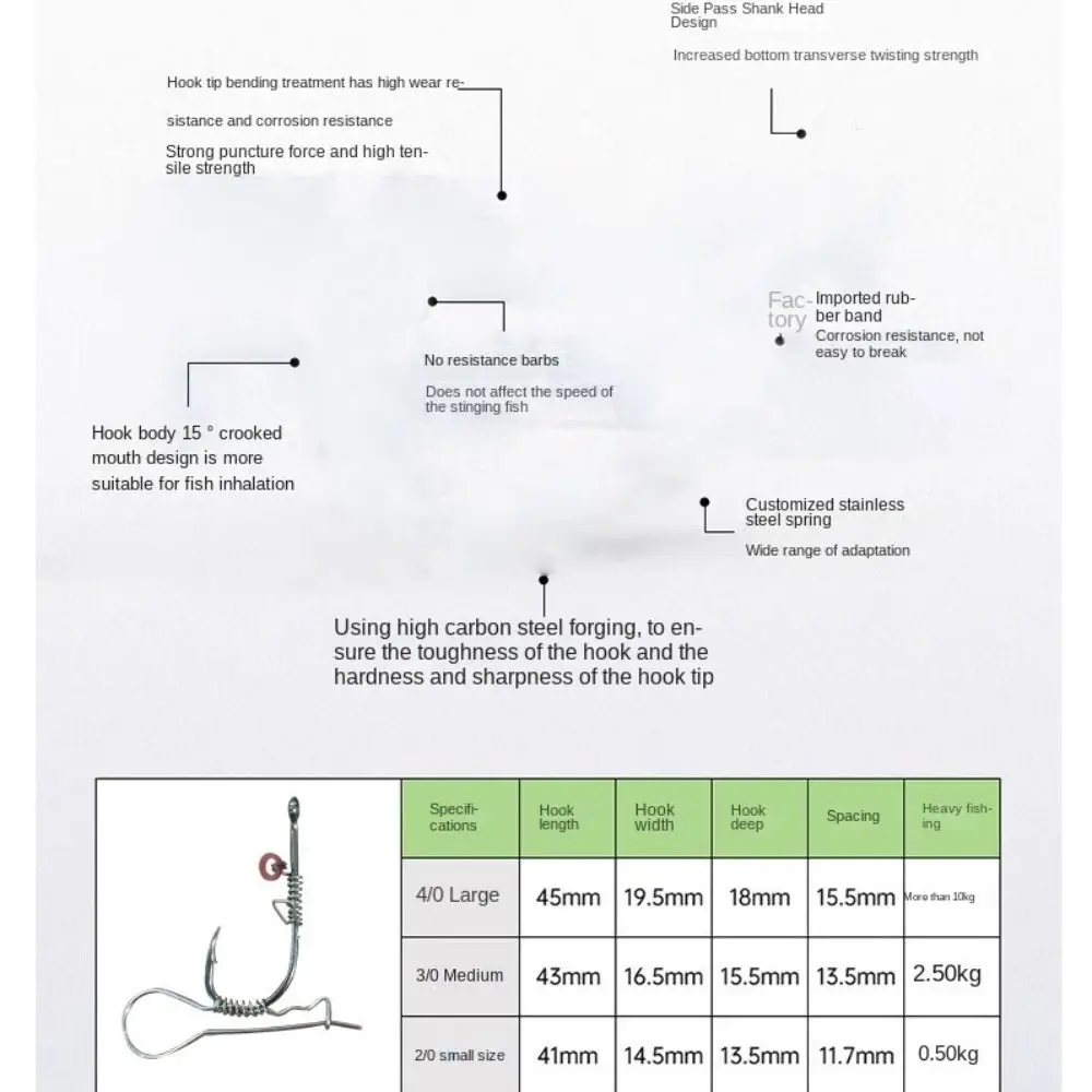Versatile Application: Our Fish Hook is designed for a wide range of fishing scenarios, be it saltwater, freshwater, or brackish water. From rivers to lakes to these hooks deliver stable and reliable performance to meet your diverse fishing needs. Superior Durability: Crafted from high-quality carbon steel, our barbed fish hooks boast exceptional strength and durability. Whether facing challenging fishing conditions or reeling in heavy catches, these hooks remain steadfast, providing reliable protection for your fishing expeditions. Innovative Design: Experience unparalleled convenience with the double back barbs on our hooks. The innovative design ensures easy operation, allowing you to effortlessly secure live shrimp without intricate steps. This unique feature not only maintains shrimp activity but also showcases their graceful swimming motion. Portable Convenience: Our product includes compact and portable storage boxes for your convenience. These boxes keep your hooks organized and secure, whether you're embarking on long-distance fishing trips or short outdoor excursions. Enjoy the ease of carrying your hooks wherever you go and indulge in fishing at any time. Ideal Gift Choice: This Fish Hook serves as the perfect gift for fishing enthusiasts. Whether engaging in sea or freshwater fishing, this bait enhances your chances of catching fish. Elevate your fishing experience with this fishing hook. Description: Enhance your fishing experience with our versatile fish hook. Crafted from high-quality carbon steel, these hooks offer exceptional strength and durability, ensuring reliable performance in various fishing environments. The innovative double back barb design allows for easy operation, making it effortless to secure live bait like shrimp. The included compact storage box keeps your hooks organized and protected, perfect for on-the-go fishing trips. Whether you're fishing in saltwater, freshwater, or brackish water, our fish hooks provide the stability and reliability you need to reel in your next big catch. Ideal for both seasoned anglers and beginners, this fishing lure makes a great gift for any fishing enthusiast looking to improve their success rate on the water. Size Detail: 4/0#: 1.95cm x 4.7cm/0.77" x 1.85" (Approx.) 3/0#: 1.65cm x 4.3cm/0.65" x 1.69" (Approx.) 2/0#: 1.45cm x 4.15cm/0.57" x 1.63" (Approx.) 4#: 1.1cm x 2.75cm/0.43" x 1.08" (Approx.) Packaging Quantity:10pcs Barbed hook(Assembled and ready to use upon receipt)