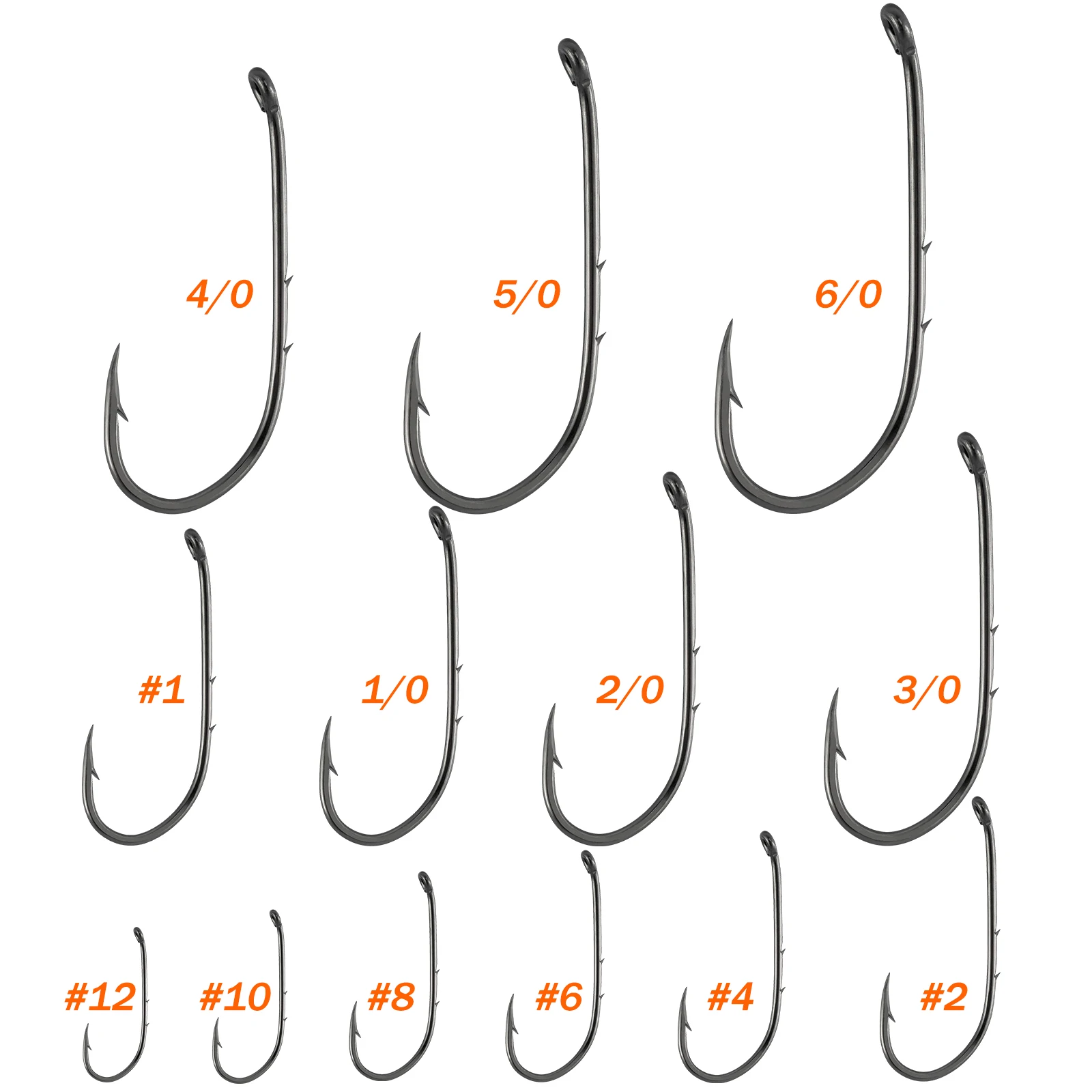 EL PAQUETE INCLUYE-100, un paquete para cada tamaño. 1/0 2/0 3/0 4/0 5/0 6/0 1 #2 #4 #6 #8 #10 #12 # en una bolsa de PE.