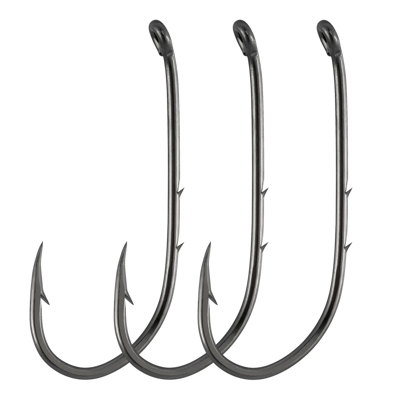 Fijación eficiente del Cebo:Dos púas en la parte posterior del vástago largo bloquean el cebo firmemente en su lugar y evitan que se caiga del anzuelo mientras pesca.