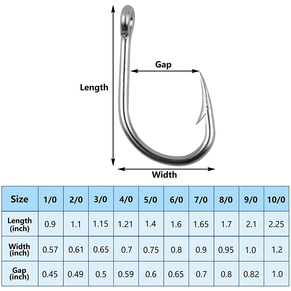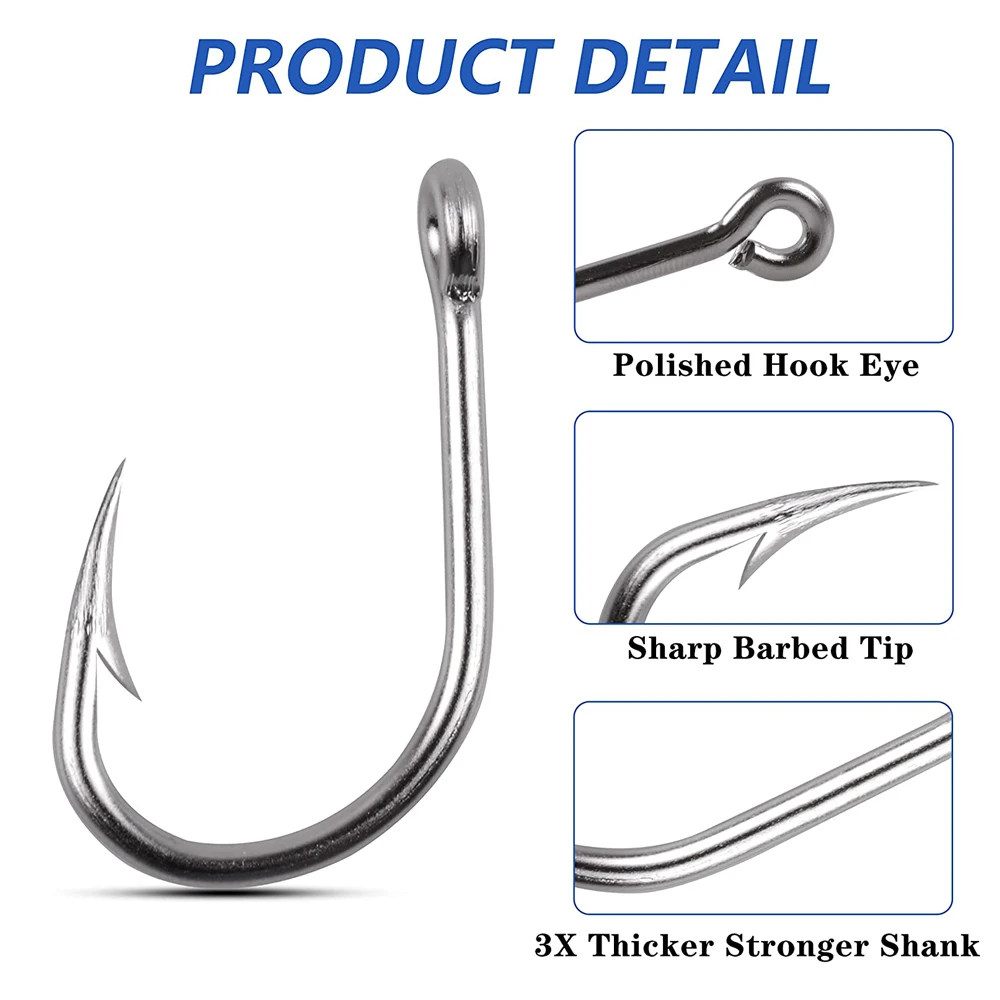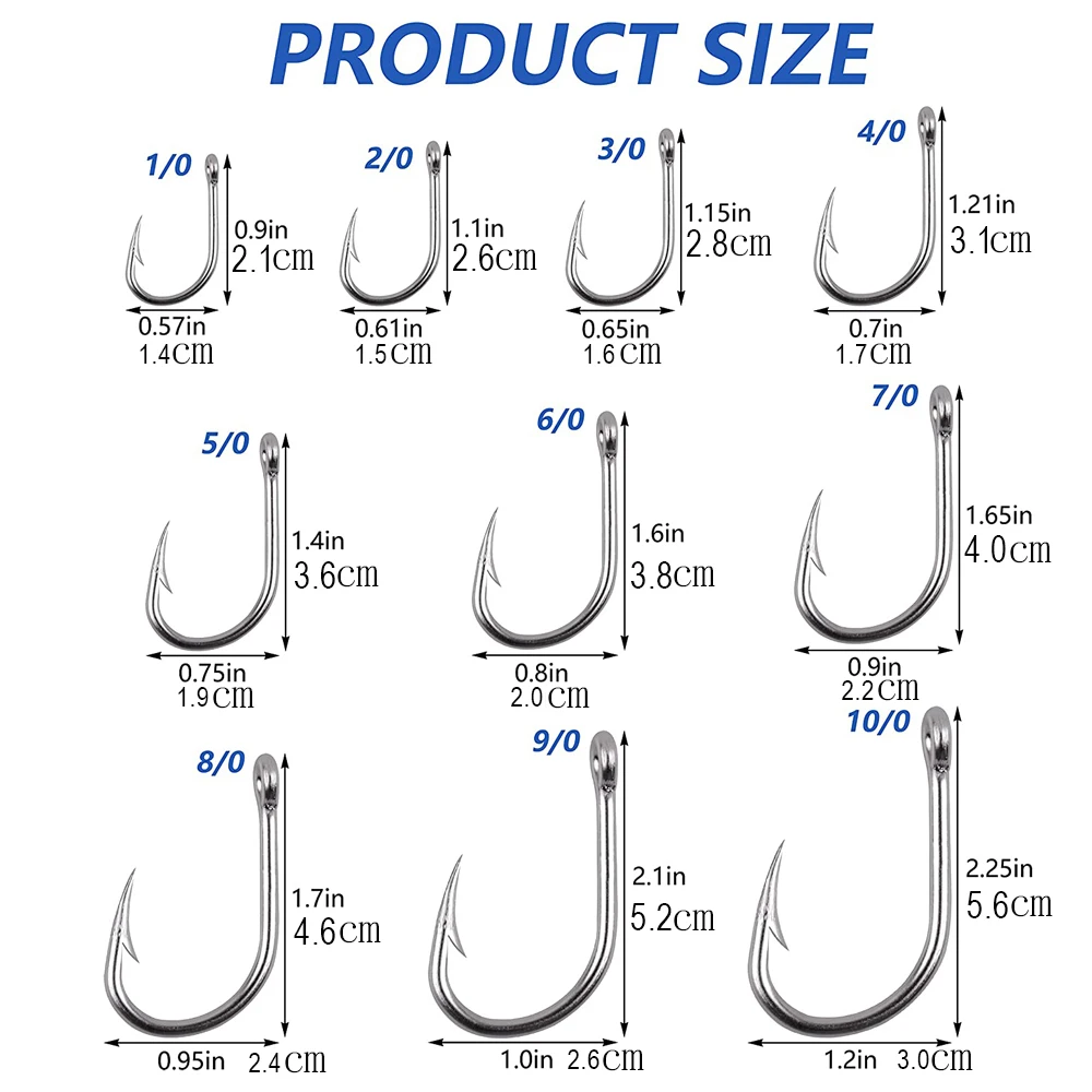 Anzuelos de cebo vivo de acero inoxidable afilado 3X 100 1/0 2/0 3/0 4/0 5/0 6/0 7/0 8/0 9/0 10/0