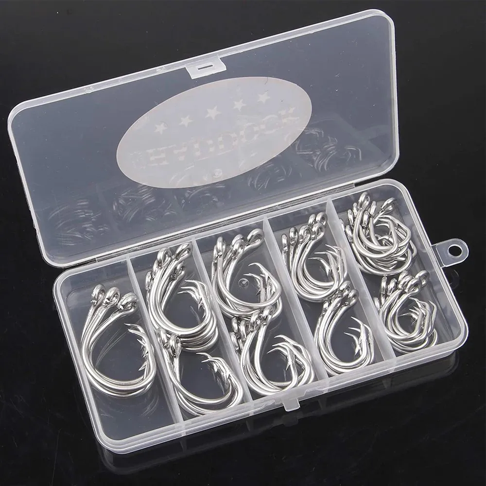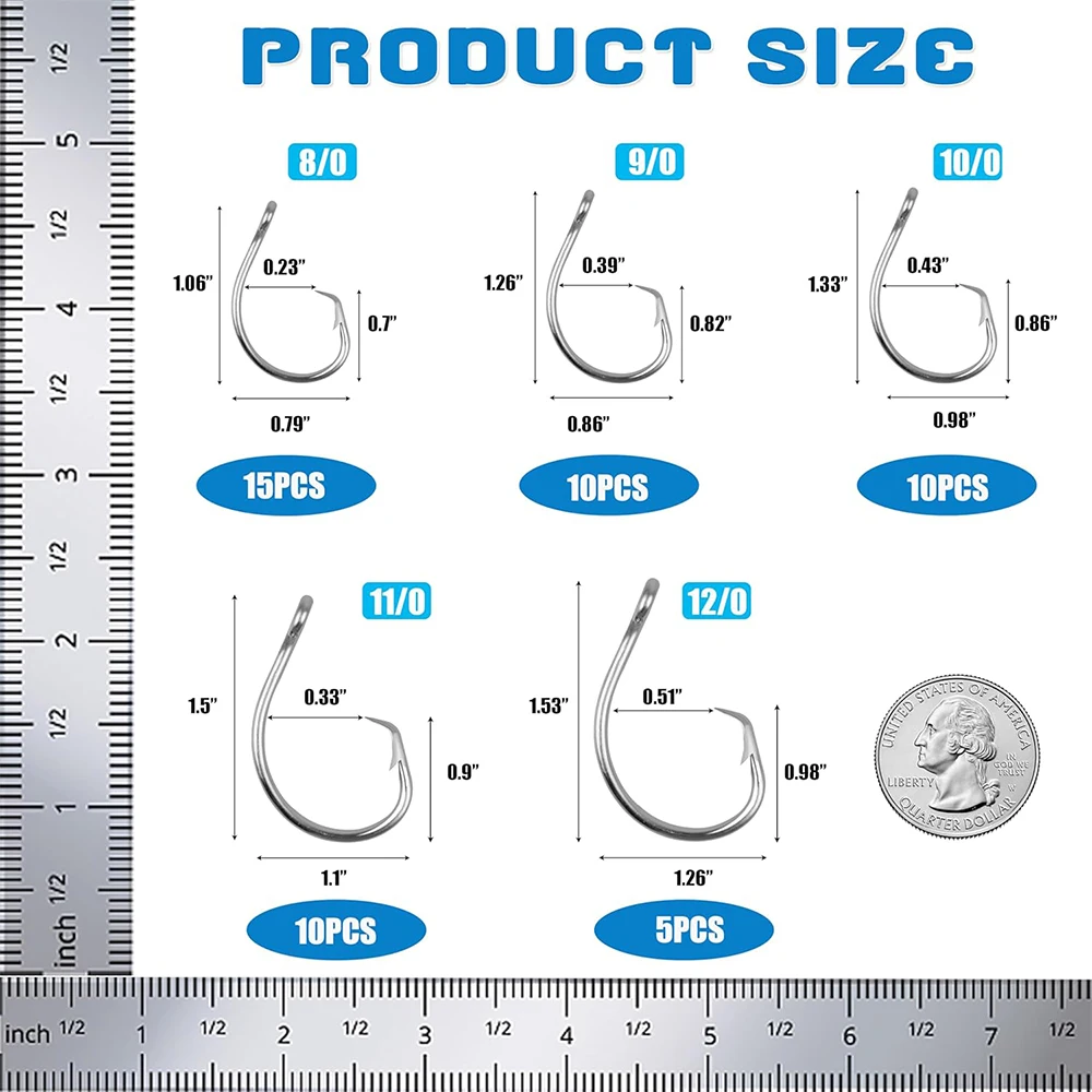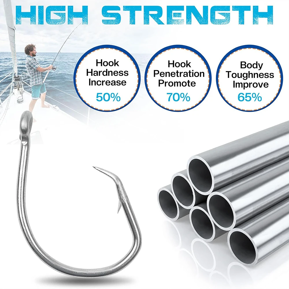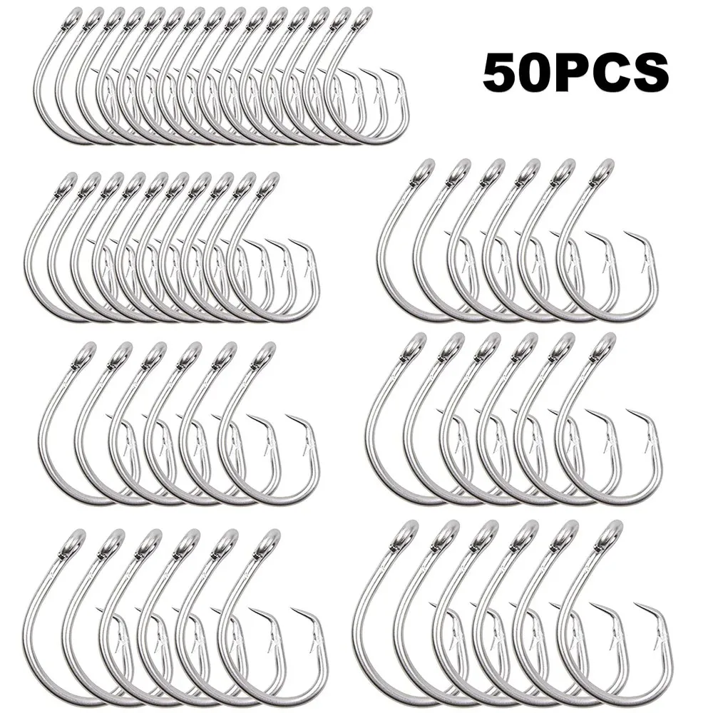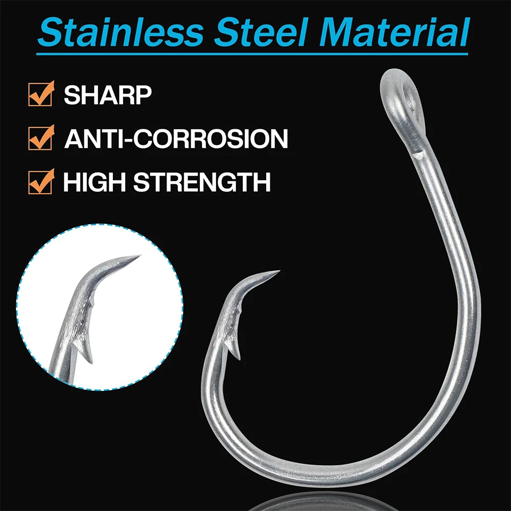 2. Acero inoxidable: Ganchos circulares en línea, hechos de acero inoxidable Premium, alta resistencia y resistencia a la corrosión, ganchos fuertes aptos para agua dulce y salada.