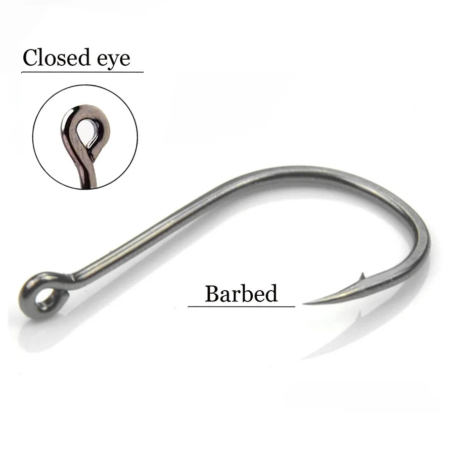 4. Ojo cerrado, una curva circular pronunciada, vástago corto, diseño de ojo voltado, ayuda a los pescadores a engancharse y sujetar más peces.