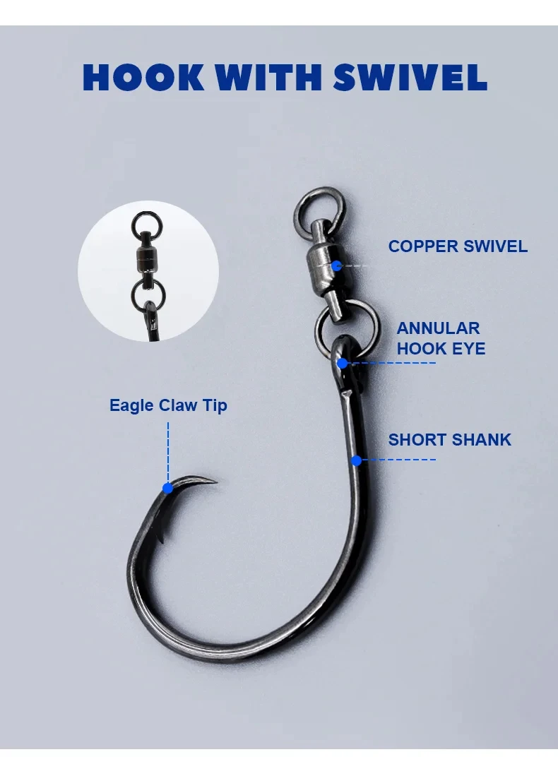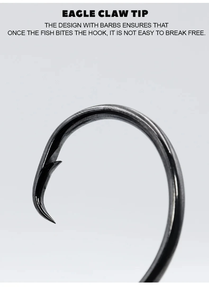 3. Los anzuelos Hawksbill son afilados y difíciles de escapar de una mordida, y el diseño del gancho de púas garantiza que una vez que un pez muerde el anzuelo, no sea fácil liberarlo.