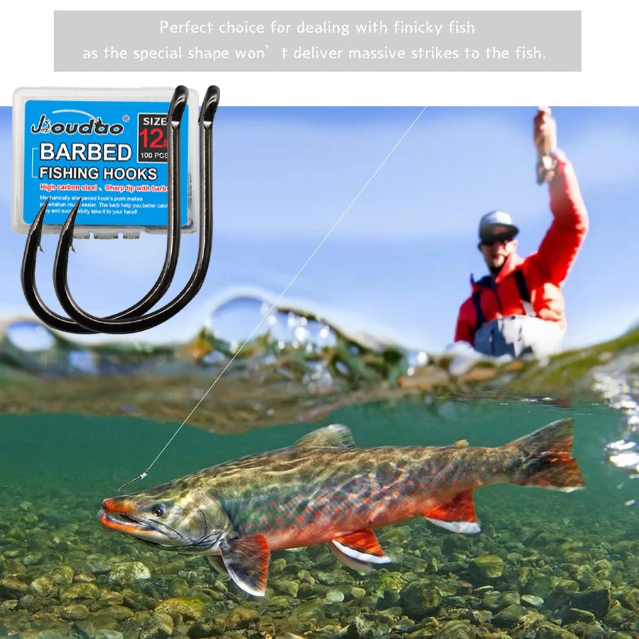 Amplias aplicaciones de diseño de puntos desplazados: Esto será útil para sus diversas necesidades.El tamaño más pequeño sería ideal para pescar croaker o alfinete para cebo y el más grande sería bueno para pescar trotas y trotas.El anzuelo de pesca con agua salada es fácil de conectar un señuelo blando. El punto de desplazamiento y la púa especial podrían hacer que la punta ruede en la esquina de la boca del pez y reduzca la mortalidad de los peces.