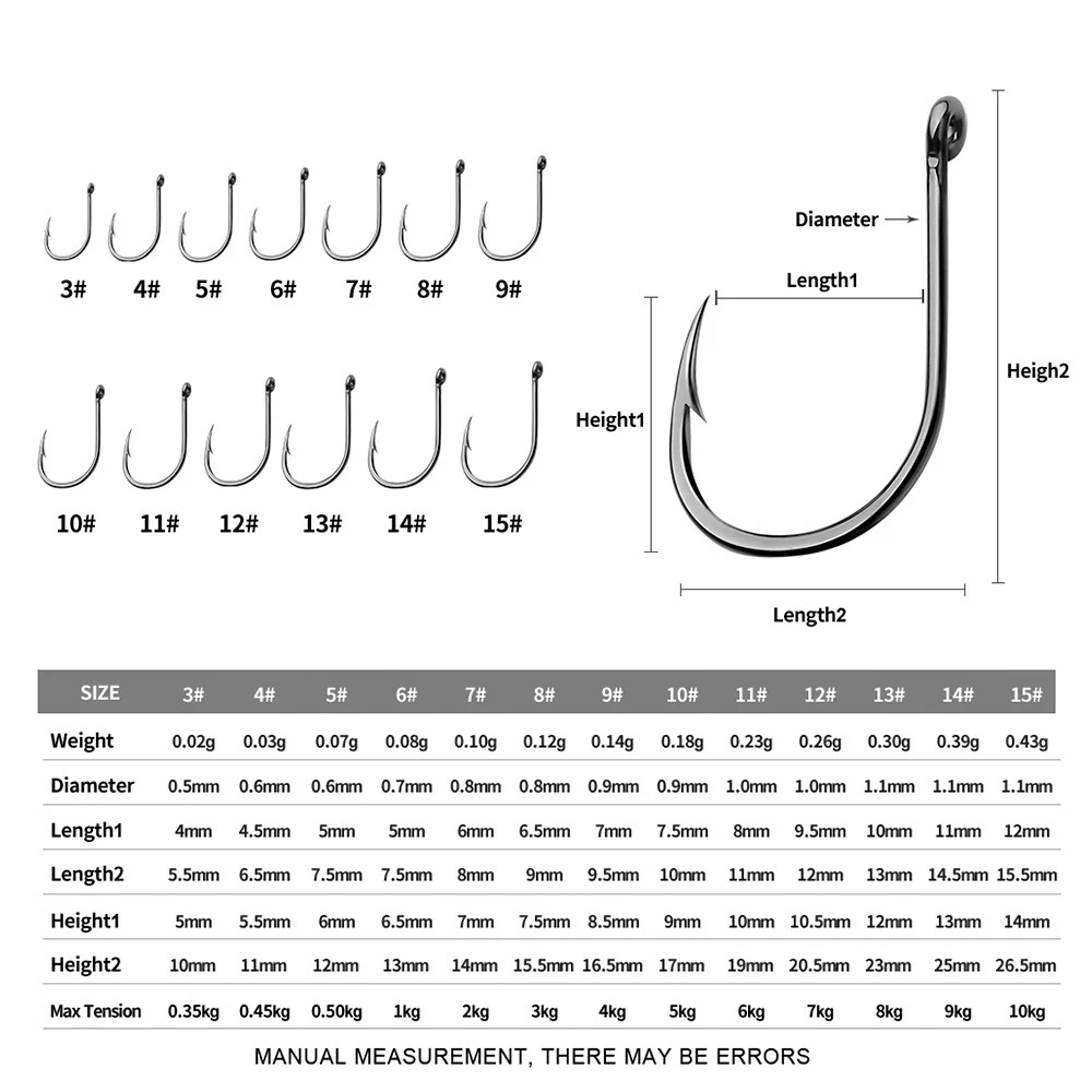 【Sharp & Strong】Los anzuelos de pesca circulares están hechos de acero de alto carbono, que tiene mayor resistencia y mejor resistencia a la corrosión. Los anzuelos de pesca tienen puntas y púas afiladas, lo que puede evitar que los peces se escapen mientras tienen un fuerte poder de penetración. Adecuado para agua dulce y salada.