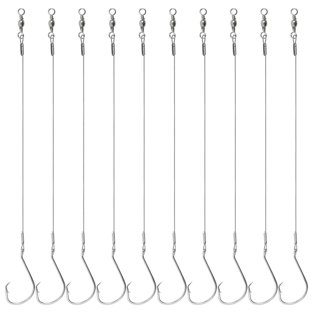 1.Viene con líderes de acero preinstalados y gancho circular desplazado, no es necesario perder el tiempo luchando con los nudos, excelentes regalos para los amantes de la pesca.Especialmente para principiantes en pesca.