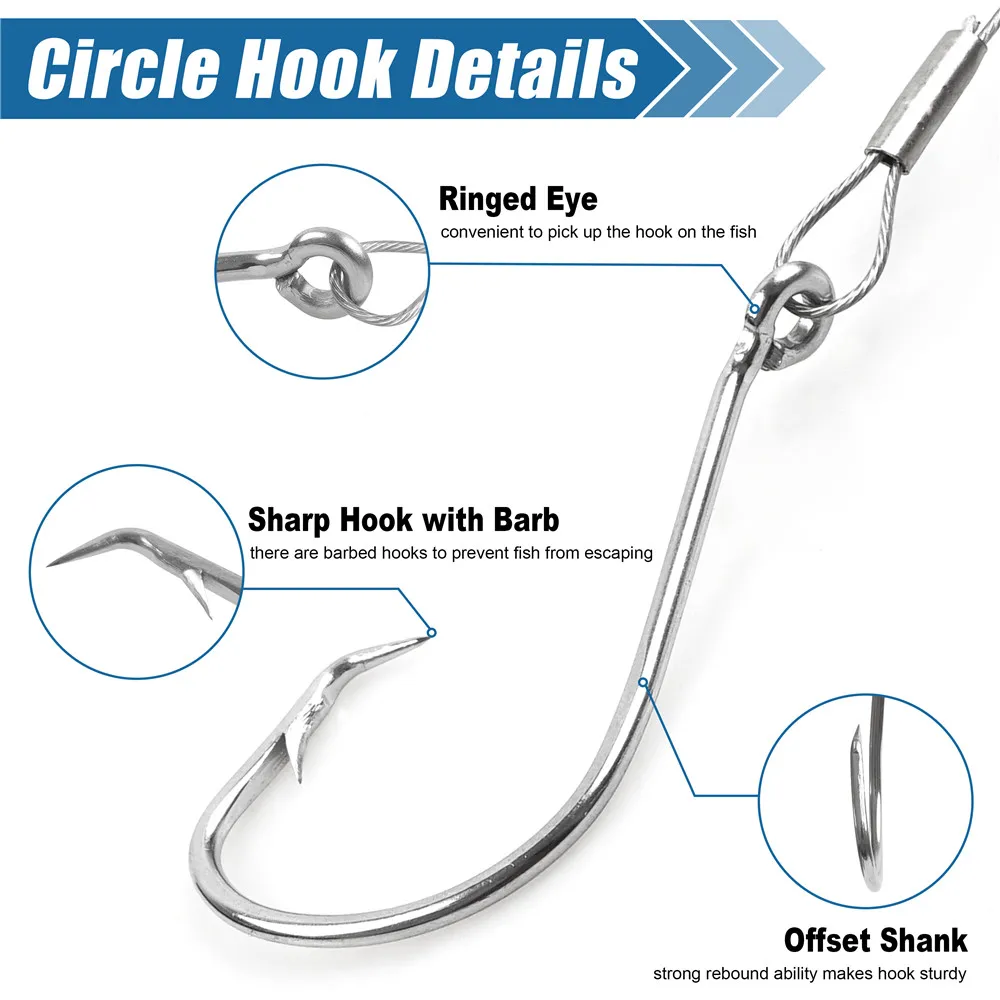3. Viene con líderes de acero pre-aparejados y gancho circular compensado, no hay necesidad de perder tiempo para luchar con atar nudos, grandes regalos para los amantes de la pesca. Especialmente para principiantes de pesca.