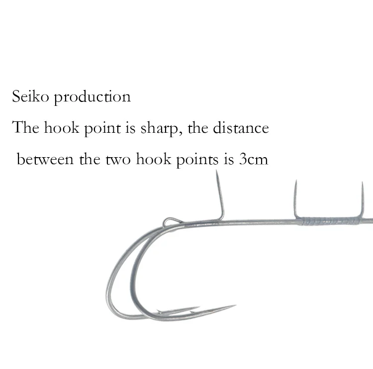 Este anzuelo es un anzuelo de pesca en el mar profesional con dos anzuelos de púas y también se puede utilizar con carne de pescado.Como pescador profesional de pesca en el mar, es muy recomendable.