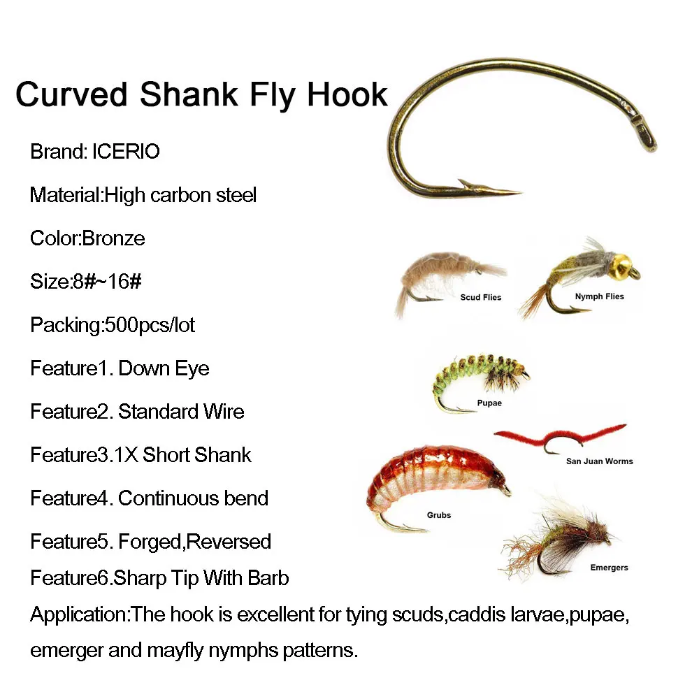 500 Uds. Anzuelo para moscas de Color bronce, ninfa, insectos, camarones, Pupae, larvas, Caddis, moscas, anzuelos de pesca, tamaño#8#10#12#14# 16