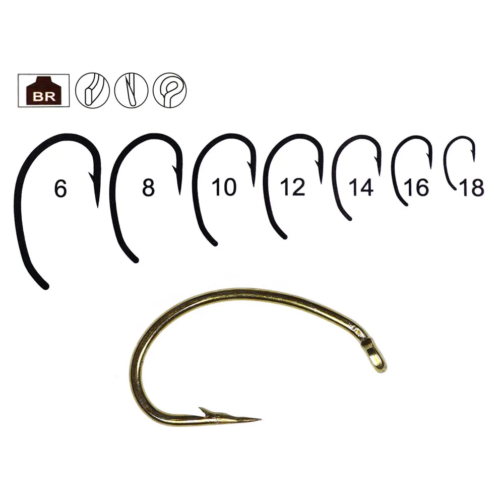 Aplicación: El gancho es excelente para atar patrones de scuds, larvas de caddis, pupae, emerger y ninfas mayfly.