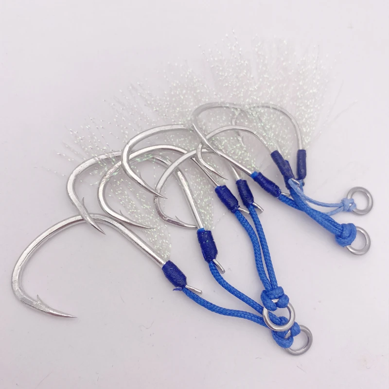 Anzuelos de doble asistencia para pesca de Jigging lento, pluma de pesca, señuelo de fundición de plantilla lenta, anzuelo de púas de pesca en el mar, 2 pares/lote