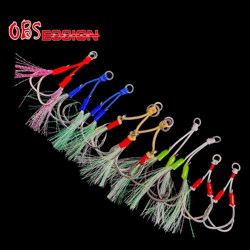 Anzuelos de pesca de agua salada, anzuelos dobles de acero al carbono, de fundición larga y lenta, set/bolsa, 1/0, 10, 2/0