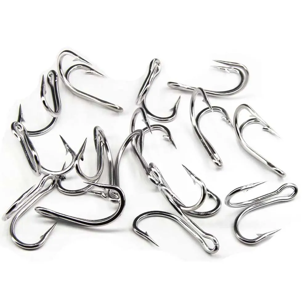 Anzuelos de pesca dobles de acero inoxidable, 20 piezas, anzuelo doble afilado grande y fuerte, tamaño 4/0 5/0 6/0 7/0 8/0 9/0