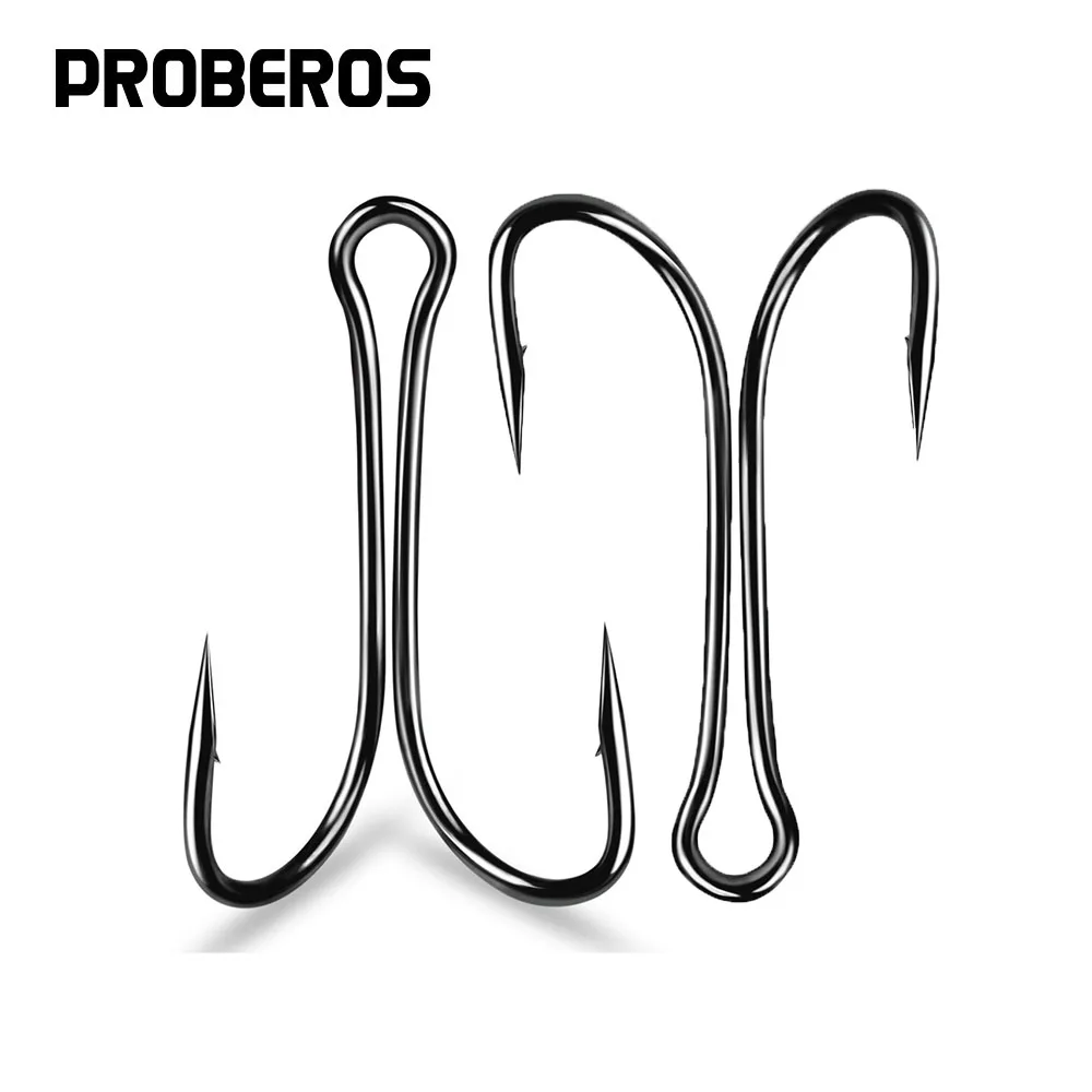 Anzuelos dobles clásicos de pesca, anzuelos de rana doble de acero con alto contenido de carbono, anzuelos de atado de moscas, vástago abierto afilado para Plantilla de lubina, señuelo suave, 50 piezas