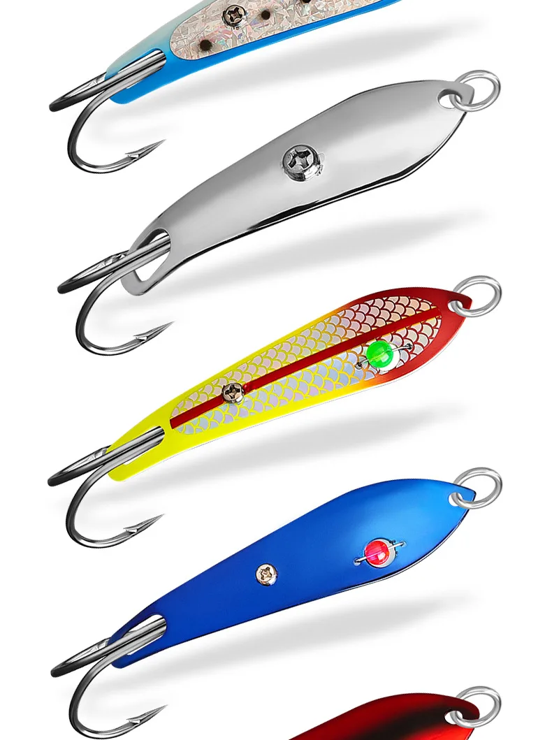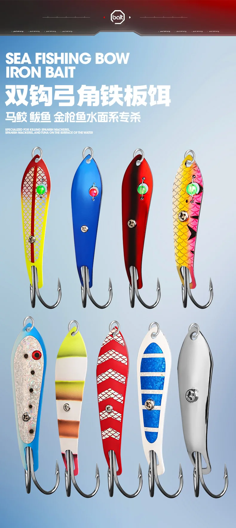 Anzuelos dobles de Metal, cebo en forma de cuchara, pesca en tren con señuelo, pesca en los mares altos, pesca de trucha, Bar, pesca de entrenamiento
