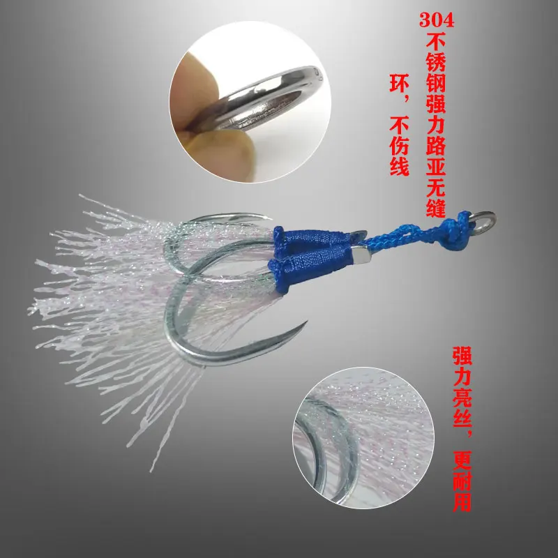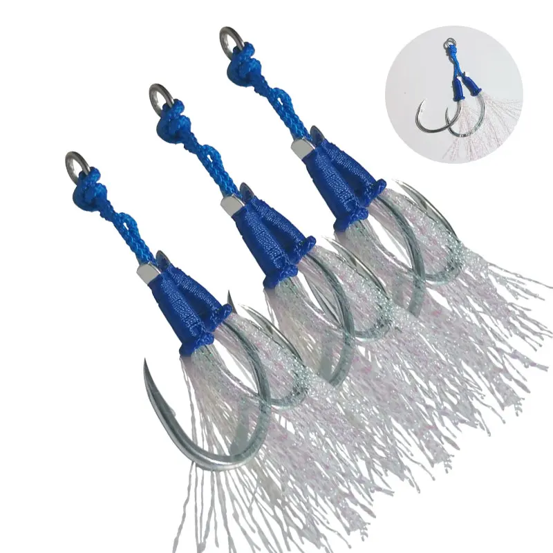 Anzuelos dobles de pesca en el mar, anzuelos de pesca de 10 piezas, de fuerte resistencia, anticorrosión, Jigging rápido lento, de carbono