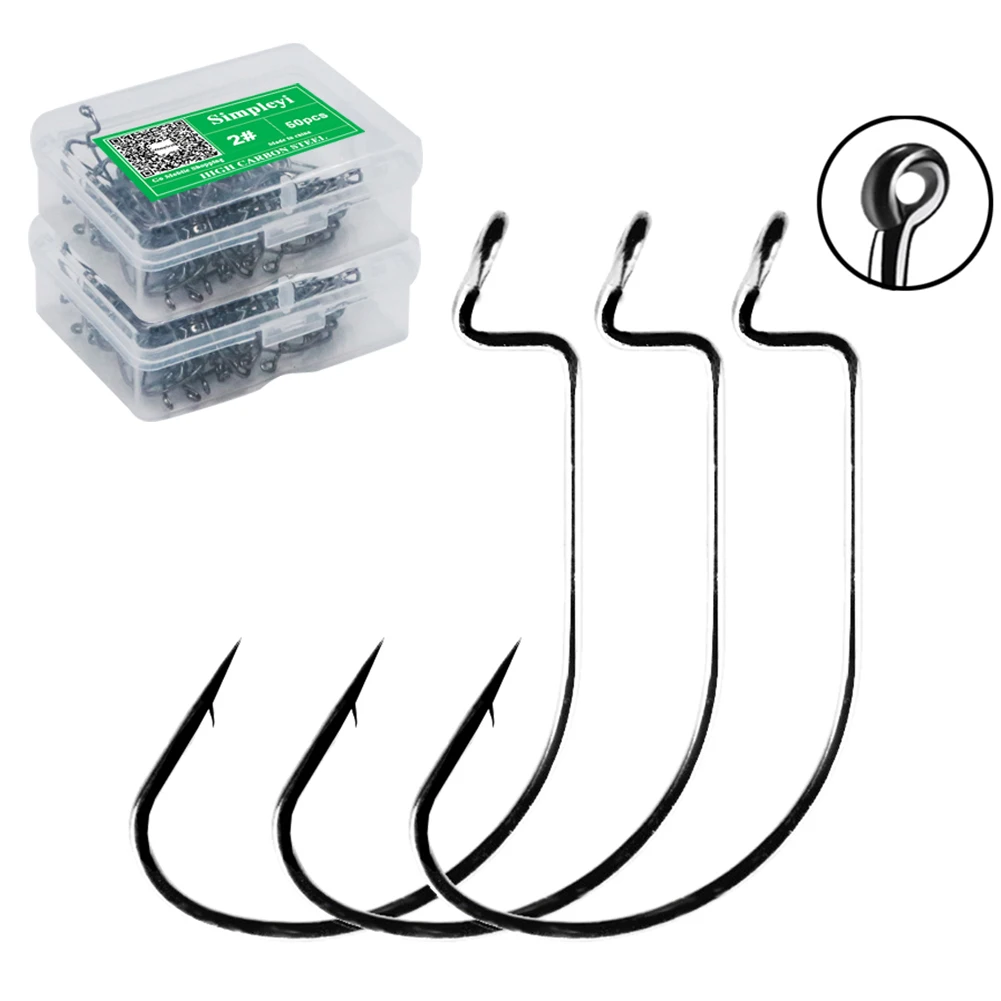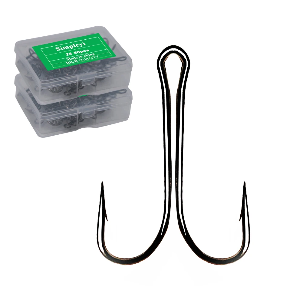 50 unids/caja, ganchos de púas dobles para pesca de carpa, anzuelo de pesca para gusanos blandos, anzuelo de pesca con mosca de acero de alto carbono, herramienta de accesorios para peces