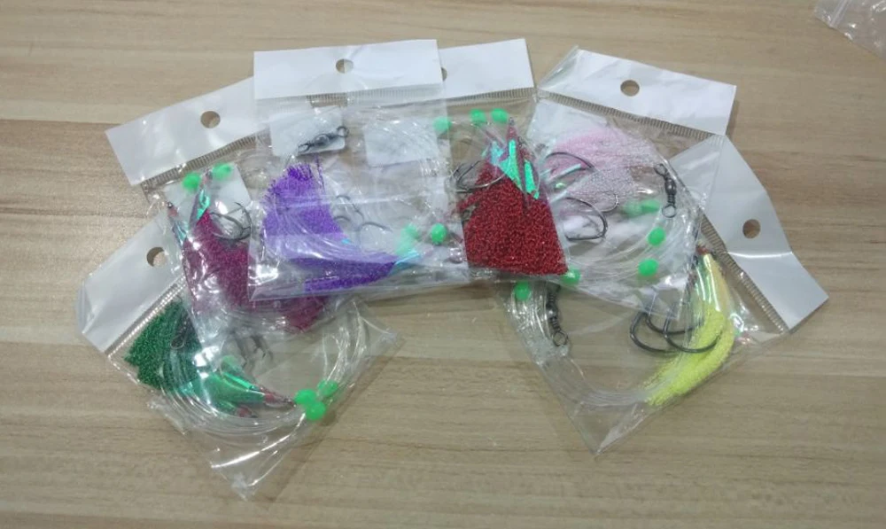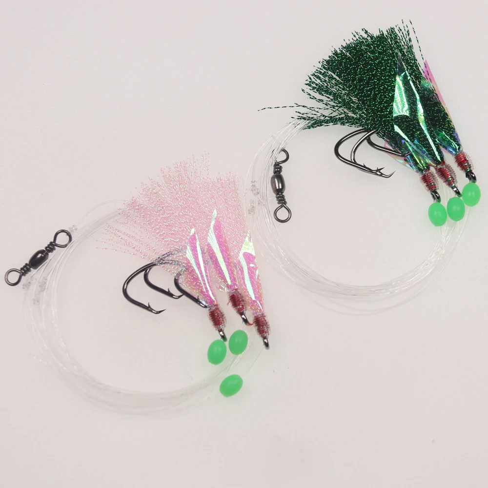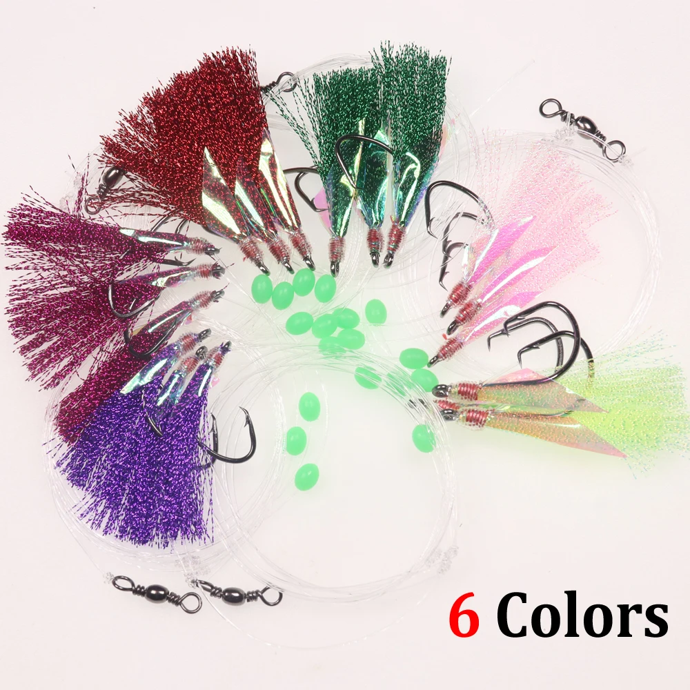 6 bolsas 3 ganchos 4/0 6/0 anzuelos fuertes aparejo intermitente grande Piel de pez Sabiki Snapper Snatcher bacalao pesca cebo señuelos amarillo rojo Bule
