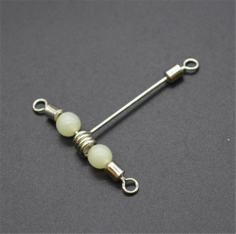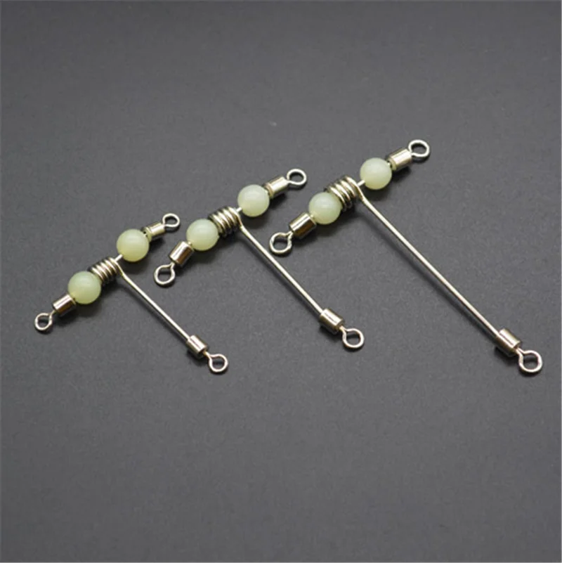 Anzuelos giratorios luminosos en forma de T, Conector de anzuelos de pesca, línea cruzada de 3 vías con cuentas de perlas, 5 uds.