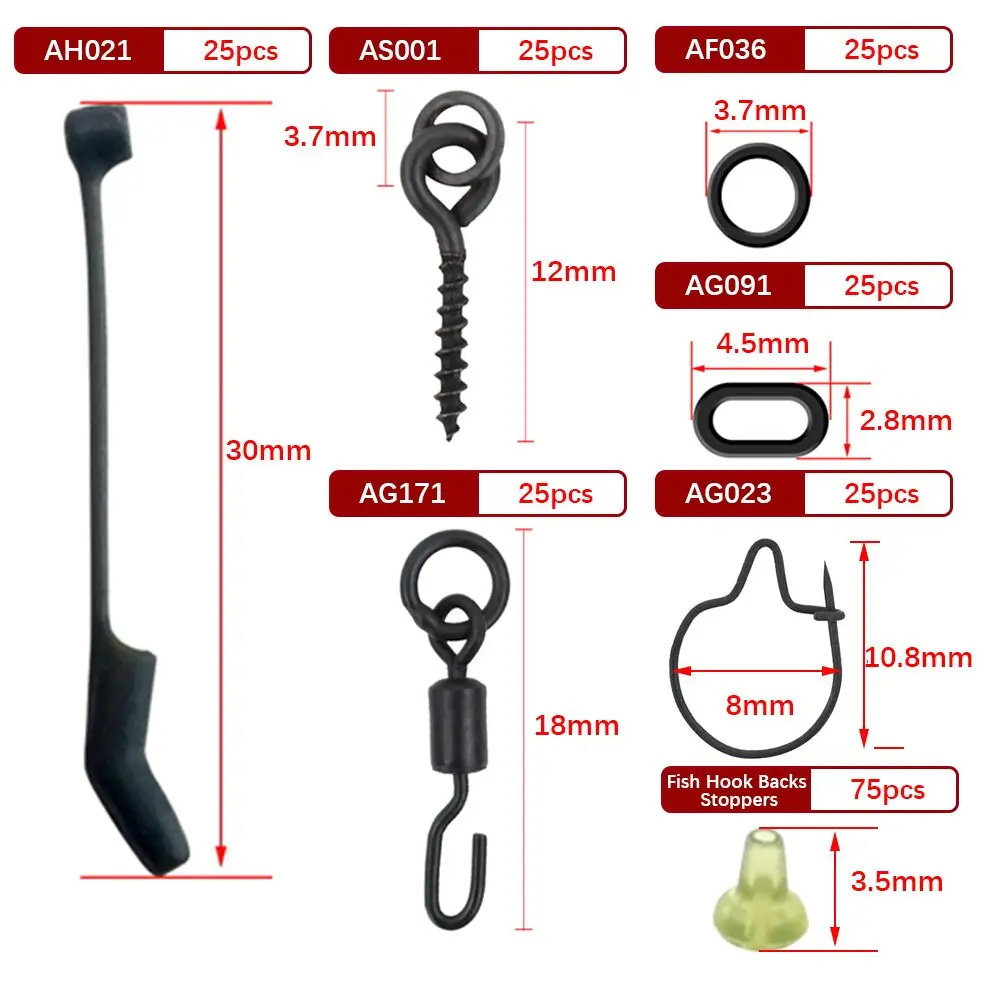 225 x pesca de carpa giratorios mangas de anzuelo listo D-rig alineador en caja aparejo de cambio rápido mangas antienredos aparejos de terminal