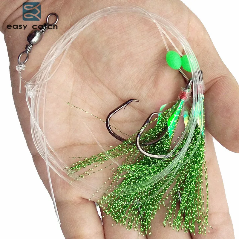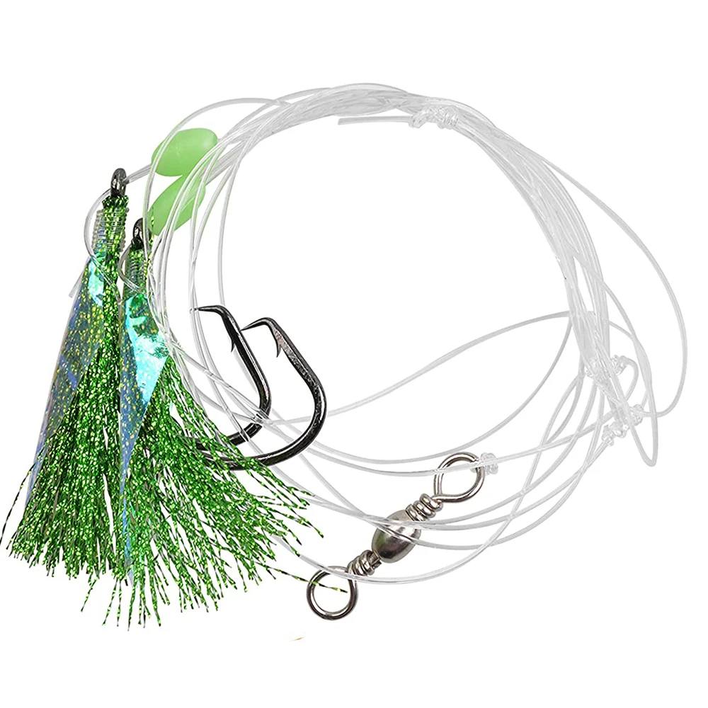 40 piezas=20 paquetes de aparejos de Flash de cebo de piel de pez 2 ganchos grandes de brazo Pesca de Mar plataformas de cebo intermitente verde con barril giratorio para arenque