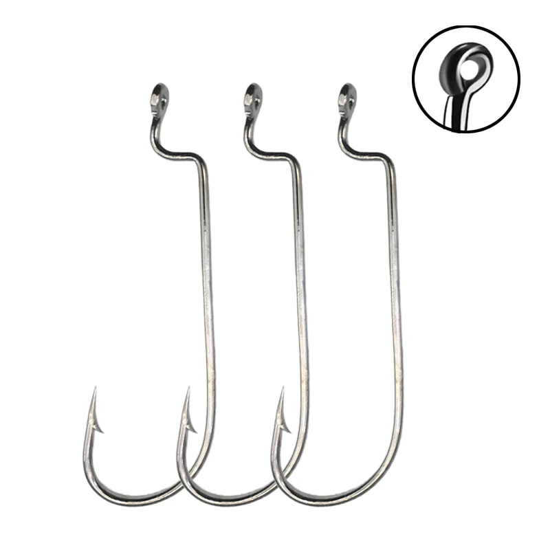 50 unids/lote de anzuelos blandos de pesca de acero al carbono, anzuelos de pesca estrechos de Super bloqueo, anzuelos Softjerk 8 #-5/0, aparejos de pesca