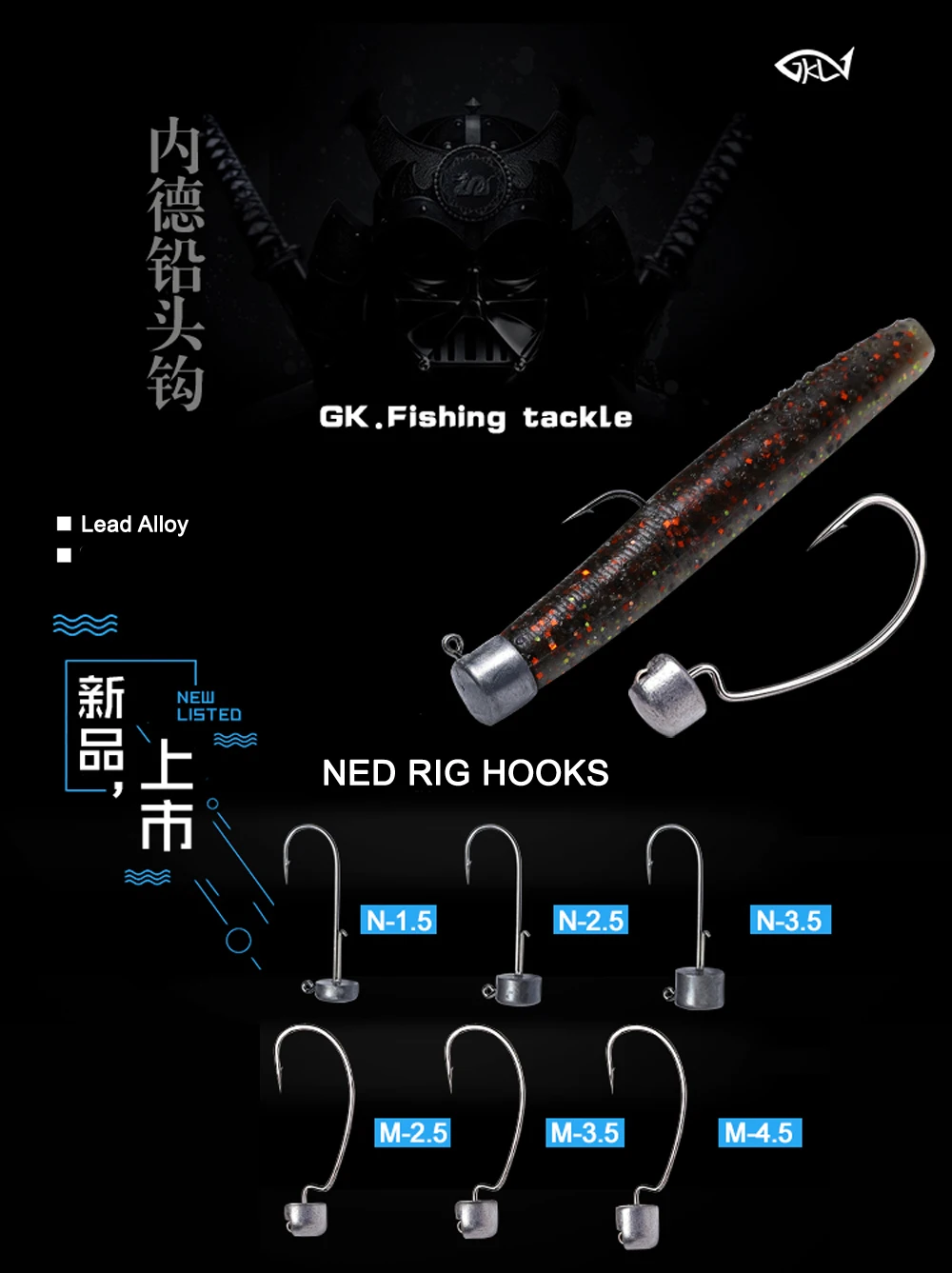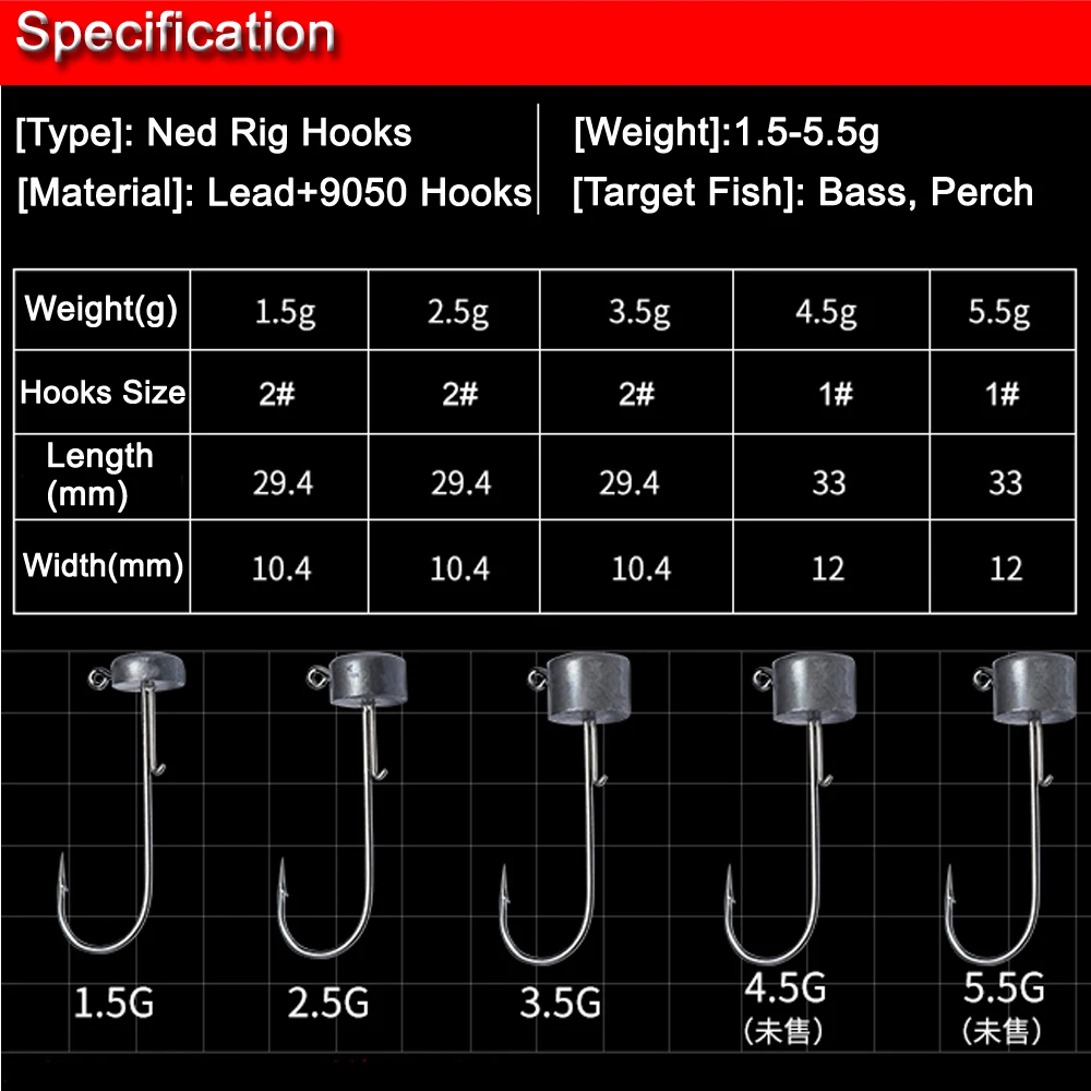 NED Worm Rig Hooks 1,8G 2,7G 3,5g 4,5G 5G 7G 9g Aparejos de pesca para Bass Wobbler Shad Lure Fuerte anticaída fuera del anzuelo