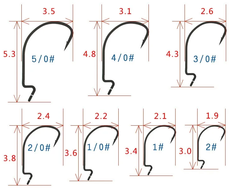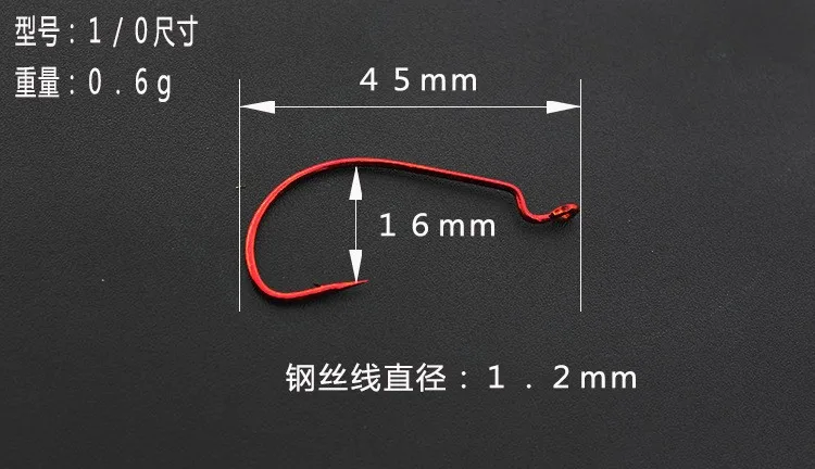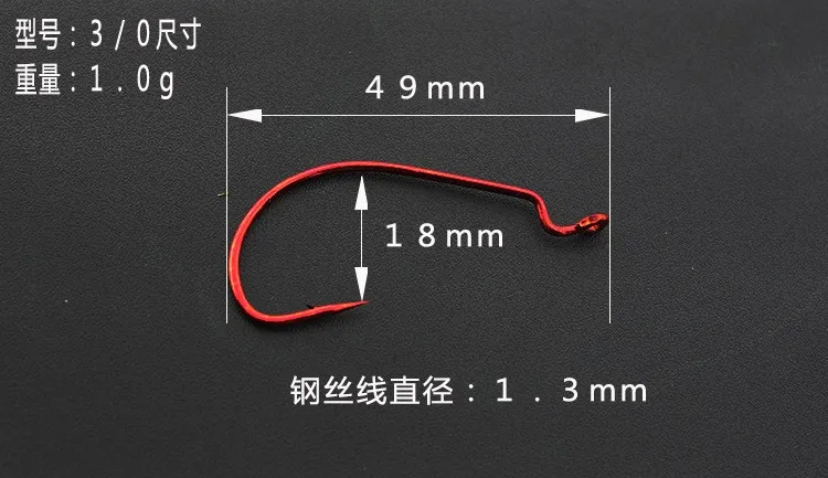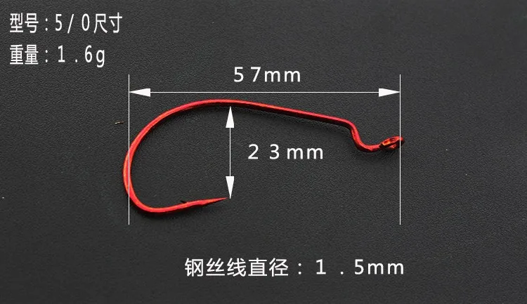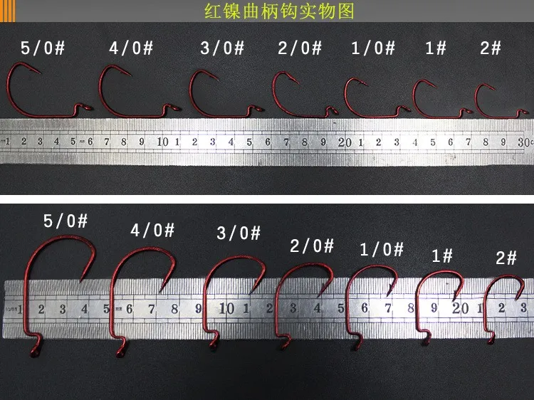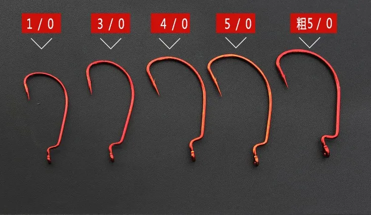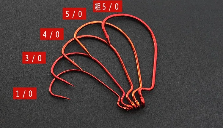 Anzuelos de pesca con manivela roja, señuelo, cebo suave, anzuelo, tamaño 1/0#-5/0# Lote de acero con alto contenido de carbono 5 piezas