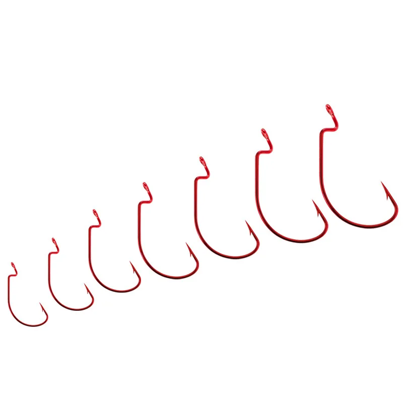 Anzuelos de pesca con manivela roja, señuelo, cebo suave, anzuelo, tamaño 1/0#-5/0# Lote de acero con alto contenido de carbono 5 piezas