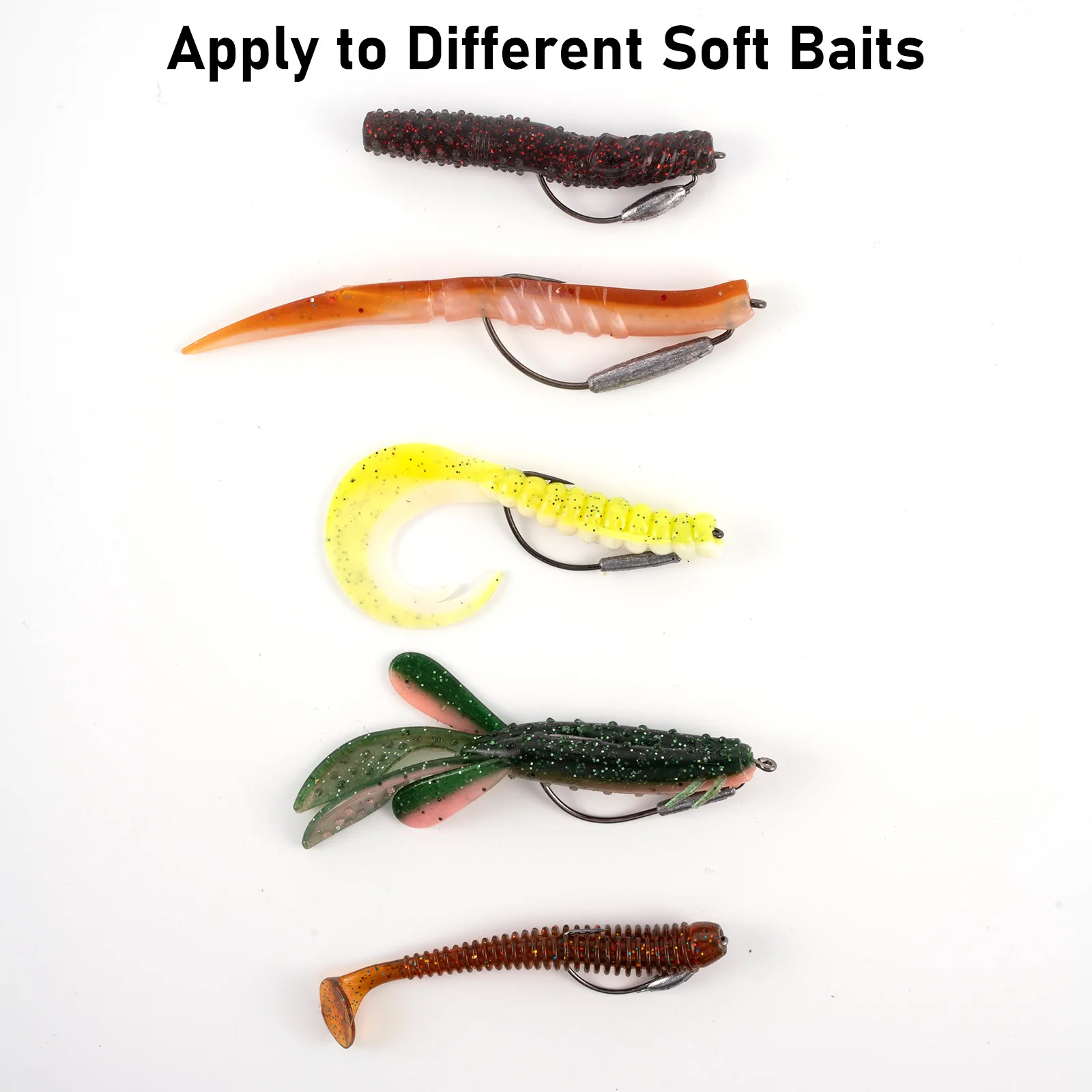 Ajuste de anzuelo: la punta de la aguja ultra afilada y el diseño de espacio extra ancho permiten que el pez muerda a través del plástico suave en un juego de anzuelos sólidos y una penetración rápida.
